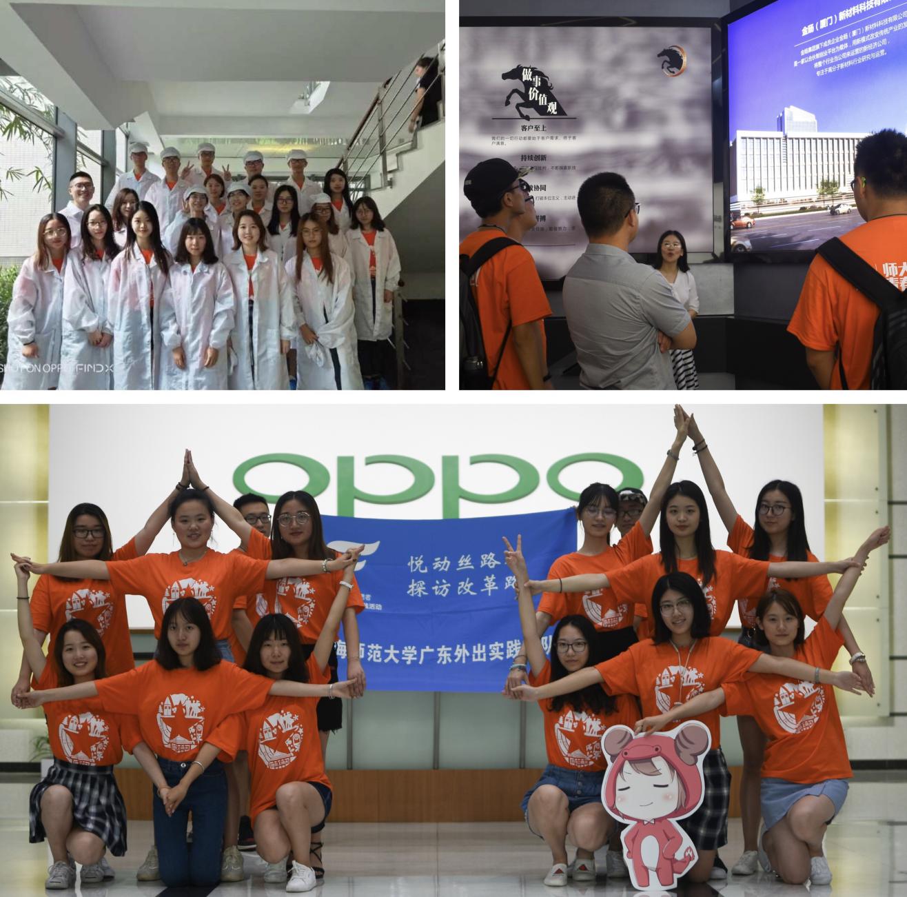 在深圳,实践团队走进OPPO公司,通过参观自动化生产运营体系、了解企业发展历程和企业文化,队员们不仅看到了改革开放四十年来,以OPPO为代表的民营企业的蓬勃发展,还真切感受到了现代民营企业的创新精神和工匠精神。在福州,实践团队走访了全国首家实体创业平台——金旸集团。通过与企业负责人的沙龙互动,队员认识了全新的商业模式,感受了产学研一体化在创新创业中的优越性,明晰了青年学子在创新创业中的责任担当。