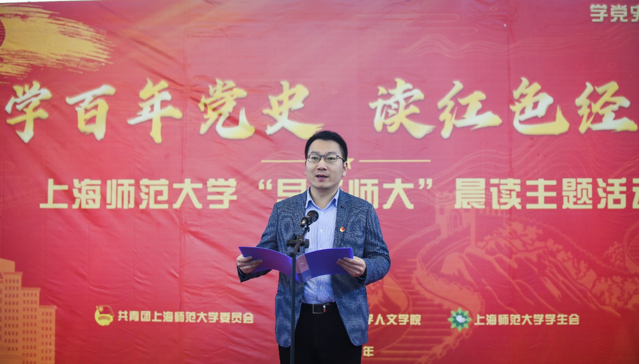 校团委书记潘黎勇向全校青年发起晨读倡议并指出,“早安师大”晨读计划,旨在培育优良学风校风,涵养青年学生“多读书、读好书、好读书”的良好习惯,提高广大学生的阅读兴趣、拓宽知识领域、丰富精神文化。今年是建党100周年,他号召青年学子们多读红色经典、读好红色经典,厚植爱党、爱国、爱社会主义的情感,让红色基因、革命薪火代代传承。