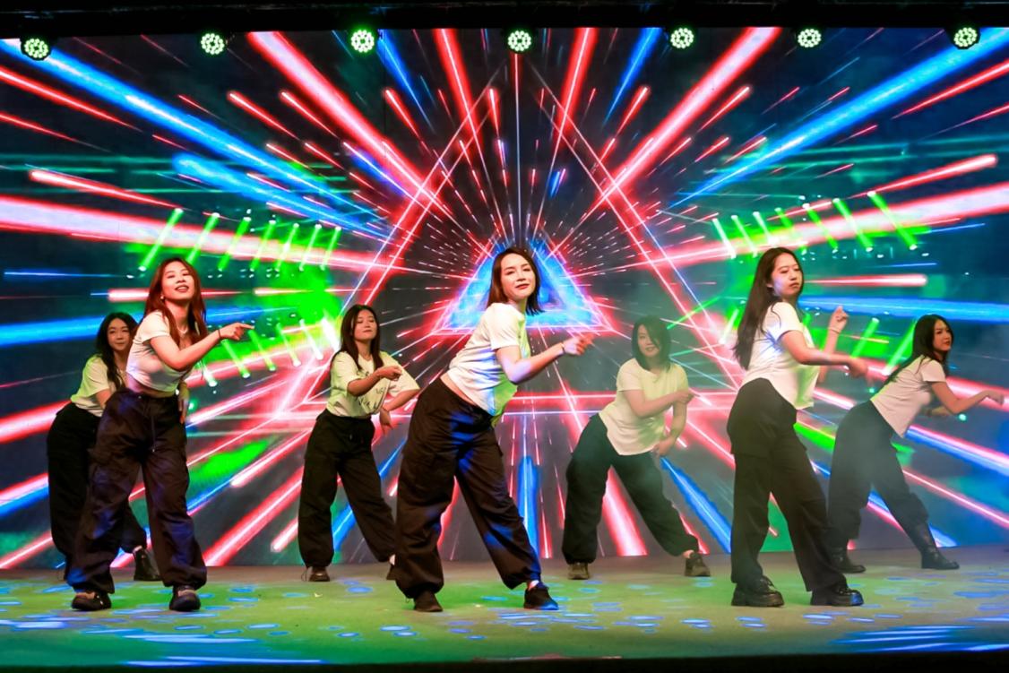 活动在早安舞蹈社青春洋溢的舞蹈中拉开帷幕。在“师生音梦汇”环节中,师生们携手献上了精彩纷呈的表演。各学院青年教师带来的舞蹈《卡拉永远OK》以其欢快的舞步和充满活力的表演,瞬间点燃了全场的热情;音乐学院演唱的音乐剧片段《阳台》,通过精湛的演技和动人的歌声,将观众带入了一个经典浪漫的爱情故事;师生带来的乐队弹唱《米店》,以其深情款款的演绎,打动了在场每一个人的心;留学生们带来的塔吉克斯坦舞蹈,展现了不同肤色、不同文化下同一份热爱艺术的情怀;图书馆、教育学院、信息与机电工程学院的青年教师们通过舞蹈《美好时光》诠释对时间的热爱,传递对生活的憧憬。校艺术中心主任殷为杰、音乐学院青年教师袁晓群带来特别演唱《鸿雁》,他们富有感染力的嗓音,让听众仿佛置身于广袤的草原,感受到了其中的辽阔与豪迈。