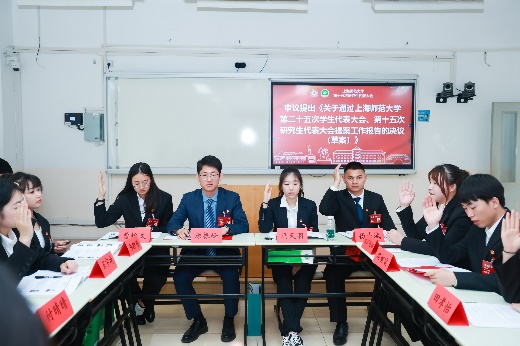 在第二次全体会议上,与会代表通过了学生会工作报告、研究生会工作报告和提案工作报告;选举产生了上海师范大学新一届学生常任代表委员会委员、研究生常任代表委员会委员、学生会主席团和研究生会主席团。