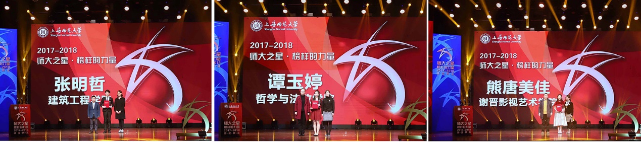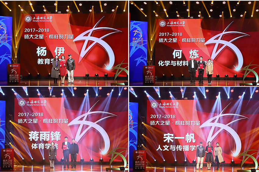 青春正当时,熠熠顾生辉。1128日,2017-2018年度“师大之星·榜样的力量”颁奖典礼在奉贤校区上师大剧院隆重举行。校党委副书记、副校长葛卫华,副校长李晔出席此次颁奖典礼,各职能部处、学院负责人及教师代表共同为2017-2018年度“师大之星”颁奖,与学生共同分享收获的喜悦。