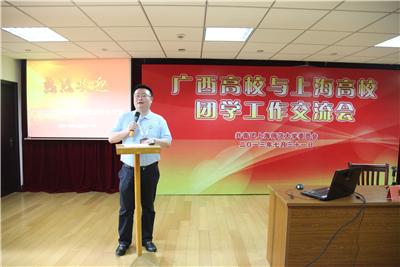 7月31日,由广西高校师生组成的广西高校共青团干部培训班一行来我校进行工作交流。团市委学校部部长陈立俊、沪上兄弟高校团委书记、我校校团委书记等纷纷到场进行工作交流。 校团委书记戴冰老师对远道而来的广西师生表示欢迎。他从不同方面展示了上海师大别具特色的团学工作,与各校师生交流。座谈会特别安排了分组交流,全场师生分为四个小组,在我校各学院分团委书记的带领下,分别以组织建设、社会实践、信息化建设、科研创新进行交流。《青春印·迹》画册使每位与会嘉宾耳目一新,以图画的形式更为直观地展示了上海师范大学丰富的团学工作。 会后,一行人来到上海师范大学校史馆进行参观、交流。校团委书记戴冰亲自为嘉宾进行讲解介绍,校园风采尽展现。校史馆内的志愿者全程细致讲解,深厚历史更亲切。大家非但了解了上海师范大学的发展历史,也对学校更加亲近。不少广西师生借机询问我校团学工作,我校师生与来自广西的客人们其乐融融,自由行拉近了千里距离、不一样的心。 结束了简短交流工作,上海团市委,广西高校师生、上海部分高校的团干部应邀汇聚一堂,进行了座谈会用餐。上海团市委学校部部长陈立俊致辞,欢迎与会嘉宾并肯定了此次团学工作交流活动。简餐期间,师大之星的短片为聚餐增添精彩,精心准备的默契度小游戏,为此次行程画上亮丽的一笔。来自广西的学生与上海师范大学的学生展开破冰活动,交换富有当地特色的小礼品,会场沉浸在一片欢笑之中。 最后,广西自治区高校工委、教育厅宣传部副部长张发钦进行发言,对于这次广西高校与上海高校团学工作交流会给予了充分的肯定,此行双方的收获都很多,对于团学工作的提升很有帮助,与会人员都纷纷期待下次的相聚。 作者: 李 源 |
