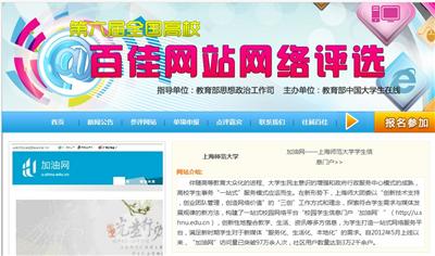 喜大普奔:加油网参评全国高校百家网站,小伙伴们快来为加油网投票吧!登陆网站为第160号——上海师范大学”加油网“进行投票!