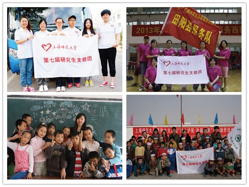 今年是我校在广西开展支教服务的第6个年头,同时也是广西田阳开展西部支教10周年,新一届的支教团被寄予了更多的期待。面对着截然不同的文化、生活差异,志愿者积极融入当地百姓、融入当地师生,以饱满的热情和高昂的斗志投入到支教的各项工作中去,在大山深处传播知识。在“曙明计划”、“阳光种子千元计划”等项目的支持下,志愿者在教育教学、助学助困、成长导航、科技传播、捐赠帮扶等方面开展了诸多工作。由于当地多为留守儿童,学童家长普遍不重视教育,志愿者每逢周末就挨家挨户地家访,几乎走遍了田阳的每一个乡镇,对家境贫寒、无力求学的同学进行家访,实地了解同学们的家庭情况和成长环境,将“梦圆广西”活动中社会各界的关心和支持送到那些贫寒学子手中。 ![]() 在基层实践中创先争优,在服务西部中建功立业。上海师范大学研究生支教团志愿者不仅身先士卒响应时代的召唤,而且也为全校青年树立了爱国奉献的典范。据悉,我校支教团志愿者继2013年开展“梦圆广西”活动受到强烈反响后,志愿者们将继续开展助学甘肃的活动,为甘肃学童募集课外书籍。如果您也想与上海师范大学支教团一起参与,可登陆新浪微博(@上海师范大学研究生支教团)了解具体情况。