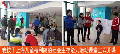 社会生存能力课程是我校和安利公司合作为上海儿童福利院提供的一系列拓展活动课程。课程旨在通过丰富多样的课程活动形式为上海市儿童福利院的儿童们提供社会实践的体验和沟通、交流的机会,使儿童们在完成任务的过程中提升与他人交流合作的能力,增强学生的意志力和责任感,并通过深化学生的自我认识提高他们的自我规划管理能力。让孩子们在切身的体验中收获感悟,从而能更好地规划自己的人生,也为他们走向社会、适应社会打下良好的基础。