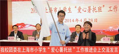 作为合作承办的高校之一,我校团委应邀在会上进行交流发言。我校社会实践品牌“爱心学校”项目在运营的二十年里,在每年的寒暑假都为各类学生群体提供假期看护服务,拥有了较强的运作管理与实践教学的经验。校团委书记史佳华就“爱心学校”的开办情况,围绕“工作常态化”、“培训系统化”、“管理规范性”、“总结特色化”、“课程时代性”五个方面介绍了暑托班工作模式的相关经验与运作特色,为各团区(县)委、高校团委更好地落实本年度“爱心暑托班”的相关工作提供了志愿者培训、安全性保障、系统化管理等方面的宝贵经验。 会上,团市委副书记徐彬与市慈善基金会副理事长姚宗强女士分别就“爱心暑托班”的全局部署与志愿者工作进行了讲话。在本次工作推进会上交流发言的还有团嘉定区委、徐汇区天平路街道、上海市启航青少年发展中心的单位代表,他们分别就各自职能领域的工作经验进行了阐述。 会议期间,我校学生王宇超还代表“爱心暑托班”的各界志愿者们接过了志愿者服务队队旗。 (供稿:校团委)