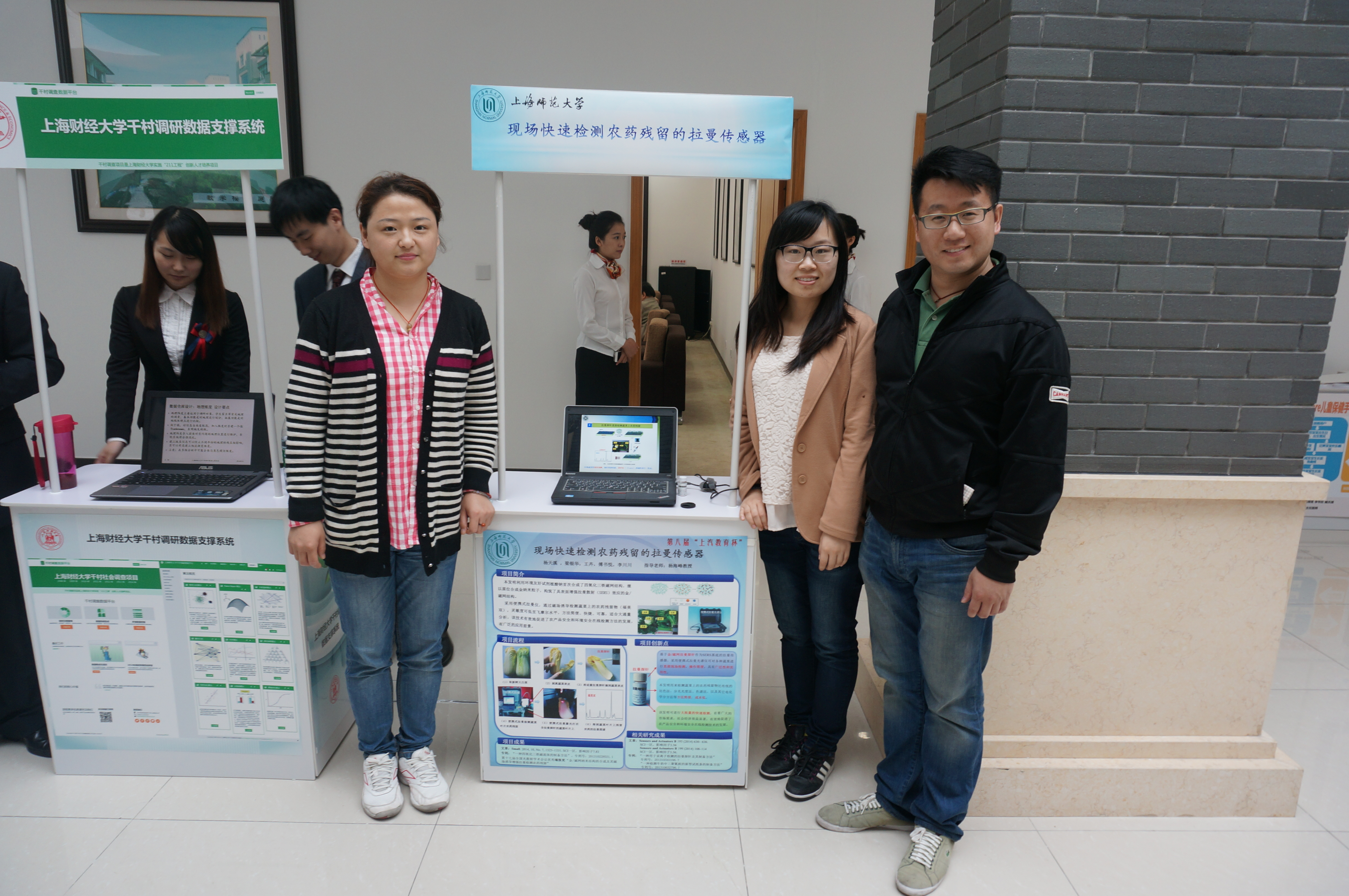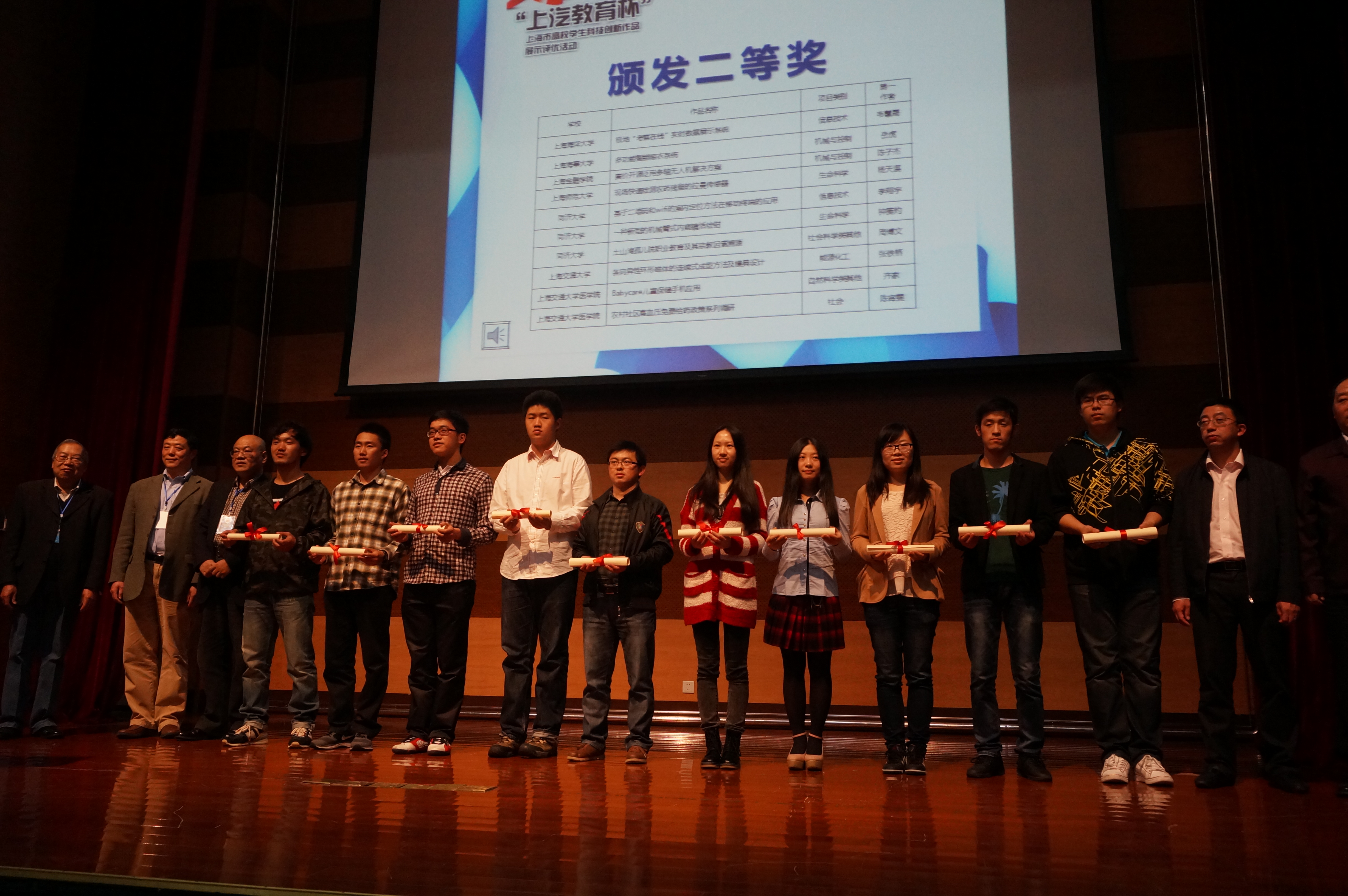 ![]() 本次比赛是我校参加该“上汽教育杯”赛事以来获得奖项数量最多的一次。从三月份启动,经过校内评审、上海市复赛、终审答辩等层层选拔,我校最终有六件作品从全市高校330件参赛作品中脱颖而出获得奖项。生环学院杨天溪等同学的作品《现场快速检测农药残留的拉曼传感器》获得大赛二等奖。生环学院陈伟等完成的《取向排列磷灰石涂层制备及其在生物学中的应用》、生环学院李宇生等完成的《高效透明导电纳米复合材料的制备及应用》、生环学院杨艳等完成的《PNIPAAm温敏图案化表面的制备及其生物学应用》、信机学院刘传勇等完成的《基于移动设备和RFID技术的物联网资产管理系统解决方案》、信机学院卜峰等完成的《基于ARM的肌电假肢控制系统》均获得优胜奖。