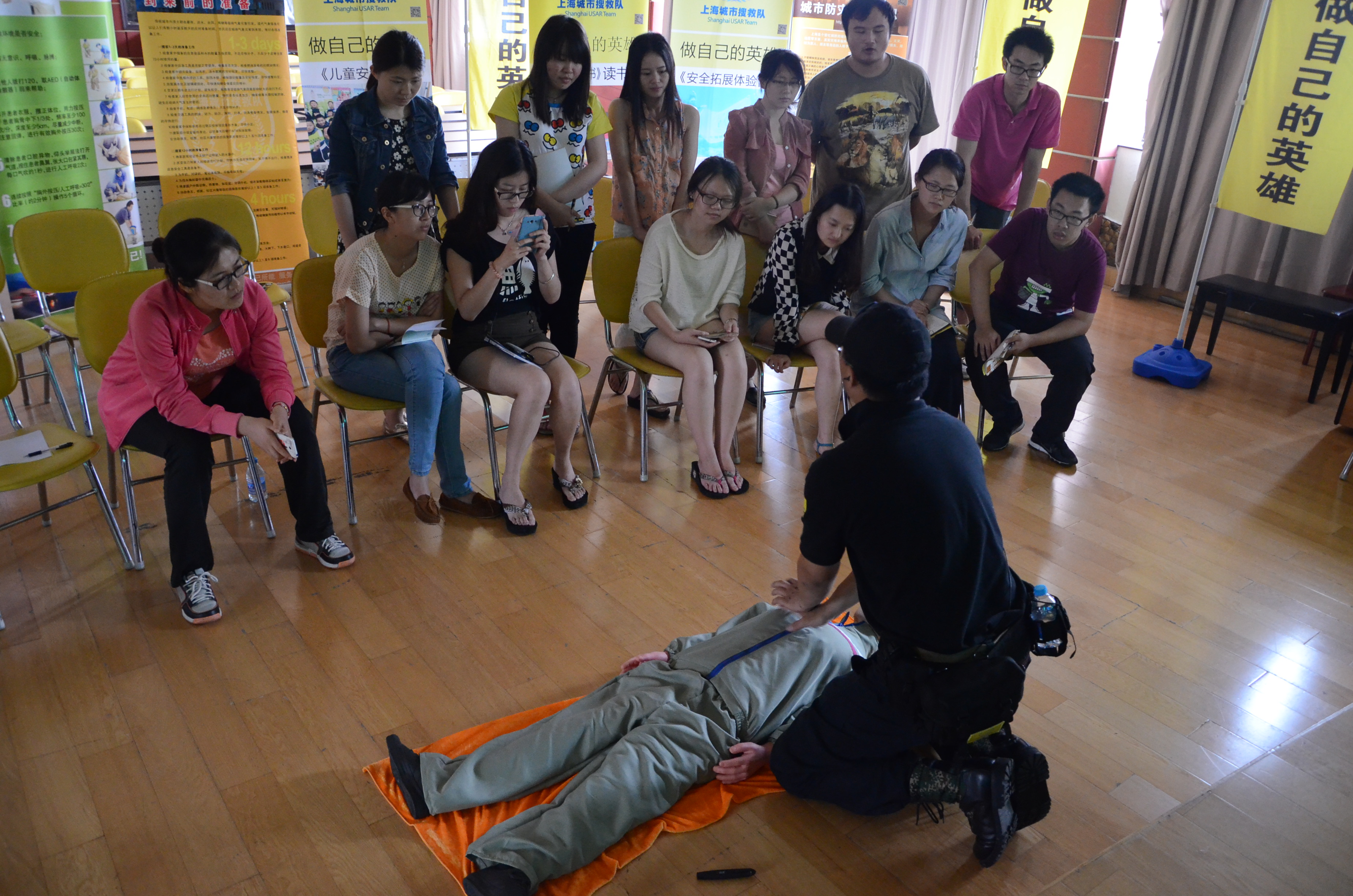 6月27日,在香樟苑四楼多功能厅,上海城市搜救队的阚诚、陈伟老师为我校第八届研究生支教团成员上了特殊的一课——“做自己的英雄”支教志愿者安全应急能力特训。