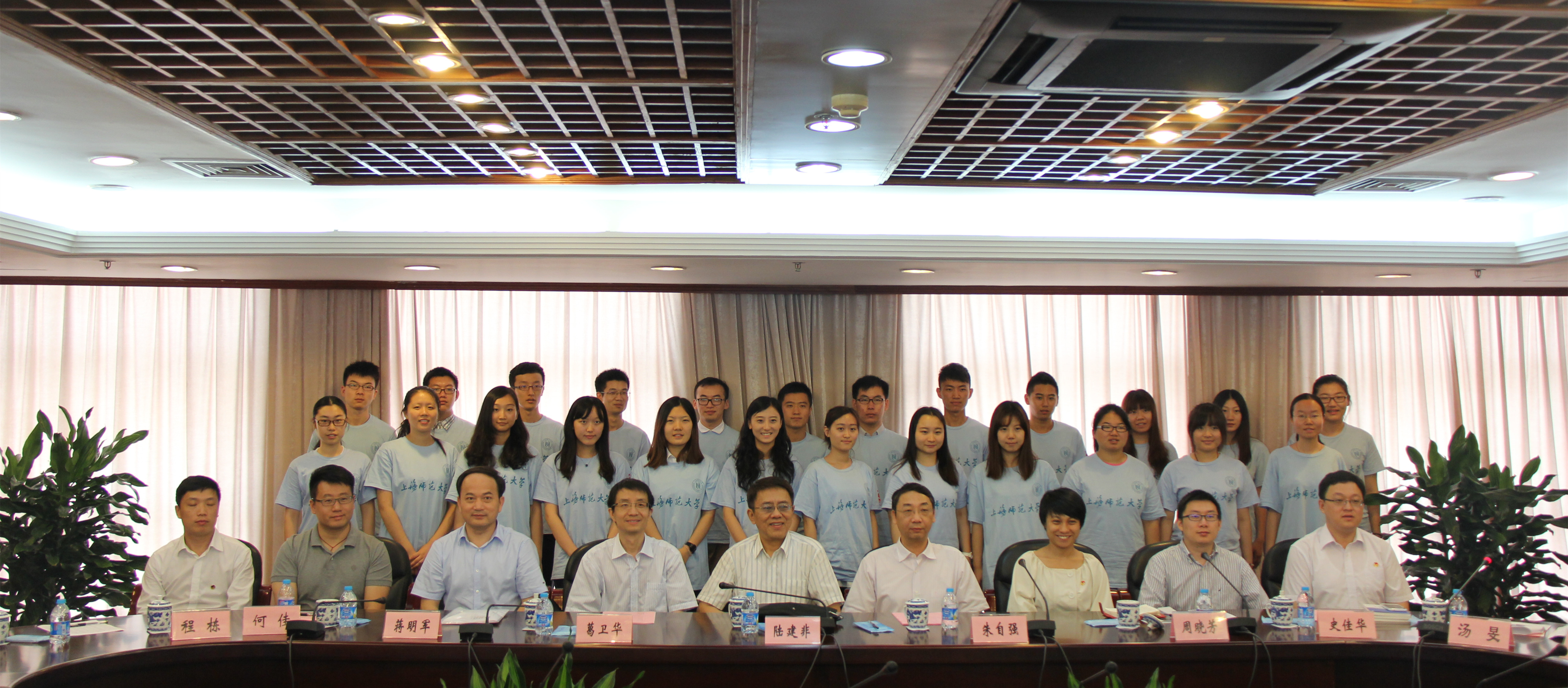 又到入伏季节,以“青春接力六十载 知行并重谱新篇”为主题的上海师范大学2014年暑期社会实践活动正在如火如荼的开展中。志愿者的精神面貌怎么样?社会实践育人的联动有哪些成效?社会实践的保障措施做得怎么样?学校领导十分牵挂正在全国各地开展实践活动的广大师生。 7月17日,校党委书记陆建非、校长朱自强、党委副书记葛卫华等冒着高温来到普陀区人民政府、普陀桃浦镇爱心暑托班、上海国际青少年科技博览会、第十二届全国学生运动会制证中心等地进行慰问。校办、宣传部、校团委、人文与传播学院、外国语学院有关负责人随行。 挂职在区县,锻炼到基层 校领导首先走访慰问在普陀区实践锻炼的挂职大学生,并召开专题座谈会。会前,普陀区委常委、副区长朱永泉与我校党政领导一行简短会晤,并就大学生暑期实践锻炼和爱心暑托班等区、校合作共建项目交换了意见。 陆建非代表学校向普陀区区委区政府对暑期社会实践工作给予的高度重视和大力支持表示深切的感谢,向在高温下坚持社会实践的学生表示真挚的慰问:大学生暑期社会实践是实现校区、社区、城区三区联动的有效载体,也是践行现代大学办学理念的重要途径。他还勉励同学们在实践中自觉践行社会主义核心价值观,扣好人生的扣子,为区县发展贡献才智,为职业发展做好规划。 朱自强亲切勉励各位参与挂职锻炼的同学,并表示,暑期社会实践对于大学生而言是非常重要的,学校不仅要在学业上培养学生,更要在德的培养上下功夫。社会实践一点都不亚于在课堂上、课本中的学习,能够帮助大学生树立正确的价值观。他从自己在普陀的工作经历谈起,希望同学们积极主动融入工作,锻炼自身综合能力,为普陀建设“上海西部新兴商贸科技区”贡献力量。 今年,我校选派24名优秀大学生赴普陀实践锻炼,占全区实践大学生总数的25.8%。他们将在挂职岗位参加为期6周的锻炼,在实践锻炼中丰富社会阅历和经验,提升社会实践能力和服务社会能力。普陀团区委书记周晓芳介绍了今年普陀区与我校暑期社会实践合作的整体情况,挂职接收单位代表以及我校挂职学生代表也分别进行了交流。 爱心暑托班,快乐不简单 校领导一行又来到了位于普陀区桃浦镇的爱心暑托班教学点,这所爱心暑托班以儿童艺术教育活动为载体,围绕社会主义核心价值观的育人要求,挖掘儿童戏剧文化与社区志愿服务的内涵构建,探索戏剧实践教育在社区文化管理与文化实践上的创新模式。儿童体验式戏剧坊以儿童绘本阅读、亲子戏剧互动、儿童戏剧表演作为核心课程,来自人文与传播学院的萧萍教授指导研究生、本科生志愿者开展教学,让童年在戏剧中释放快乐,使开办七年多的爱心学校焕发新的光彩。 作为来自“大人国”的嘉宾,校党委书记陆建非、校长朱自强体验了一场别开生面的儿童戏剧课程。“响应市政府实事工程项目,输送智力与创新力,为社会建设和民生需求贡献大学生的青春力量。”陆建非书记表示我校会坚持合作与探索,把暑托班工作做实、做好。“大人国里不会孤独,你会拥有很多的朋友,只要你好好待他们,他们也会好好待你。”朱自强校长回答了孩子们的提问,给了他们一个大大的拥抱,鼓励他们大胆的表达自己。团市委副书记杨元飞也来到戏剧体验课现场,他指出:上海师范大学积极探索区校协力共同为社区居民服务的模式,因地制宜、因材施教地开展爱心暑托班项目,获得了社区居民的一致好评。 我校与普陀区共建的 “上海师范大学科学商店桃浦镇门店”也同时亮相。校党委副书记葛卫华、桃浦镇党委书记洪跃弟、普陀区科协副主席张德鑫共同为科学商店揭牌。 赛会志愿者,展青春风采 下午,校党委副书记葛卫华一行前往上海科技馆,慰问上海国际青少年科技博览会志愿者。9名外国语学院的志愿者全程陪同来自不同国家和地区的师生代表参与5天的活动,保障了博览会的顺利召开,并与各国师生代表结下了深厚的友谊。