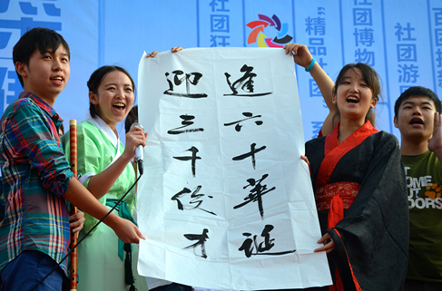 为献礼师大六十周年校庆,增进同学们对师大社团的了解,由上海师范大学校团委主办、上海师范大学社团联合会承办的“社团的风采,母校的骄傲”上海师范大学第十二届社团文化月开幕式暨百团招新于2014年10月8日在南操停车场顺利举行,社团联合会携手学校91个社团统一招新。