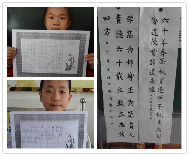 “沐风雨,育桃李,感恩师大无限情;迎朝阳,迈征程,支教西部报师恩”远在甘肃、广西支教的第八届研究生支教团也通过远程视频方式发来对母校的祝福。甘肃支教团队长李旸和队员们还手把手教授玉门的孩子们软笔书法、硬笔书法,写下自己创作的祝福对联,孩子们手中一幅幅对未来的祝愿,也希冀着教育事业更美好的明天。