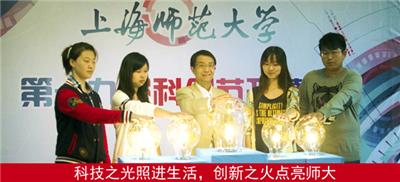 校第十九届科创节开幕 随着师生代表共同点亮“师大智慧之光”,10月15日下午,上海师范大学第十九届科创节在奉贤大学生活动中心拉开了帷幕,本次科创节以“共囊科研,独创新业”为主题,以“崇尚科学、追求真知、勤奋学习、勇于创新”为宗旨,丰富大学生的课外生活,营造良好的创新科研氛围和树立创新创业理念,来自科创节的光芒正在播撒师大的每一寸热土。 “科技创新不仅是指科学技术方面的创新、创造活动,更是技术、文化、社会、商业和人本身的创作和创新。”在启动仪式上,葛卫华书记通过美国的斯坦福大学和硅谷的成功为案例指出:科创节要打造成为学生科技信息和政策发布平台和科技交流合作平台,加快学生科研与创业建设步伐,提高科技成果聚集度和创新人才培育度。通过“政策+服务+平台”的扶持,促进大学生创新创业基地建设工作,使大学生资源优势转化成了推动大学生创业企业成长的重要力量。他还勉励学子要积极参与各项科技活动,充分融入到科研实践,在科创中有收获,有成长。 勇立潮头,共襄科研,贡献力量 本次科创节的科研巡礼部分囊括了科学商店“大带小”阅读服务部、青少年创新能力培养服务部、科技英语普及服务部等7个各具特色的门店。作为大学和社会的链接桥梁,我校科学商店的各类门店走进社区,步入社会,了解社区老人和孩童的日常生活,传递科普知识,贡献青春智慧,让广大社区居民了解到科学其实与我们的生活息息相关。我校科学商店团队还积极在上海科普教育发展基金会等单位组织的“科普教育走进生活志愿服务”等活动中精彩亮相,广受好评。