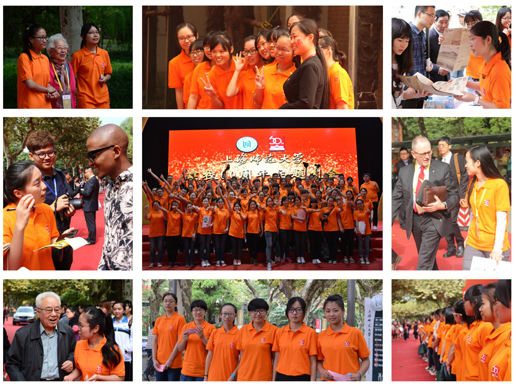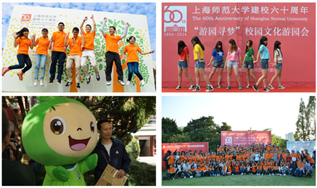 我以母校为荣,母校以我为傲 “能够在自己大学四年的生活中遇到师大的六十华诞着实是一件很幸运的事情,我格外珍惜这样的机会,尽自己最大的努力服务好每一位嘉宾和校友,用自己的实际行动祝贺母校生日快乐。”志愿者们难掩心中激动,一大早就来到岗位上开展校友返校日志愿服务。攒动的人流中一抹跳动的橙色,热情地为嘉宾、校友做介绍和指引。 莅临此次校庆活动的嘉宾和各届校友也与志愿者们亲切的交流,曾任上海师范大学校长的俞立中教授在接受志愿者采访时表示:“这么多年来,上海师范大学在外观上有了很大的改变,设施更为齐全。在内涵上,教师教育、人文社会科学与自然科学的发展也都日新月异。”他还鼓励师大学子多多参与课堂外的志愿者活动,加强社会实践认识,实现自身全面发展,让母校引以为傲。 《一个人的学思湖畔》作者翁敏华教授还在现场为志愿者签名赠书,勉励志愿者们,珍惜大学学习时光,勤思考多创作,在青春的时光中留下最好的回忆。 社团勾起大学记忆,同学校友齐聚欢庆 当天,校园里人头攒动,众多明星社团举办了丰富多彩的游园项目唤起了前来参加活动的校友们依稀的青春回忆,各类精品社团也为大家献上了精彩纷呈的表演展示。在看过了楼兰剧社精彩的表演之后,63级汉语言文学的卞权校友不禁感慨道,“当年我参加了师大话剧团,如今师大都成立了自己的剧社啦,今天能够在现场看到这些年轻的笑脸让我也感觉自己好像回到了大学时代。” 秋石印社、易衡书社等传统文化社团还现场为校友送上现场制作的篆刻和书画作品共贺母校华诞。此外,奉贤校区举办的游园会活动,也让周末留校的同学们共享师大六十华诞庆祝的喜悦,不少同学前往图书馆和大学生活动中心收看校庆主题大会现场直播。 写下祝福献师大,纪念礼品受热捧 学校为每位本科生准备了一份礼物:一个纪念校徽、一张学生自己设计的校园风景明信片。 “落叶化作春泥,谱写着一首感恩的乐章,那是绿叶对根的情谊” ……,校庆周期间,学生们纷纷化作“绿叶”、“ 小星星”,近千名学生在祝福墙上为学校六十华诞送上祝福。 “第一年入学便是遇见你甲子之诞,历史沧桑背后的是光明灿烂的未来,就像初入大学的我,甲子之后是新的开始。祝师大甲子生快,桃李满天下。” “亲爱的上师大,您的过去我来不及参与,您的未来我们共同努力。六十生辰快乐。”短短的祝福不仅道出了在校学生爱校的热情、更说出了荣校的决心。 校学生联合会也推出了一系列手绘校园文化地图、电脑手机主题桌面、校庆主题输入法、字体库等新媒体产品,与校庆纪念版徽章等精美的纪念品一起在校友游园活动期间大受欢迎。