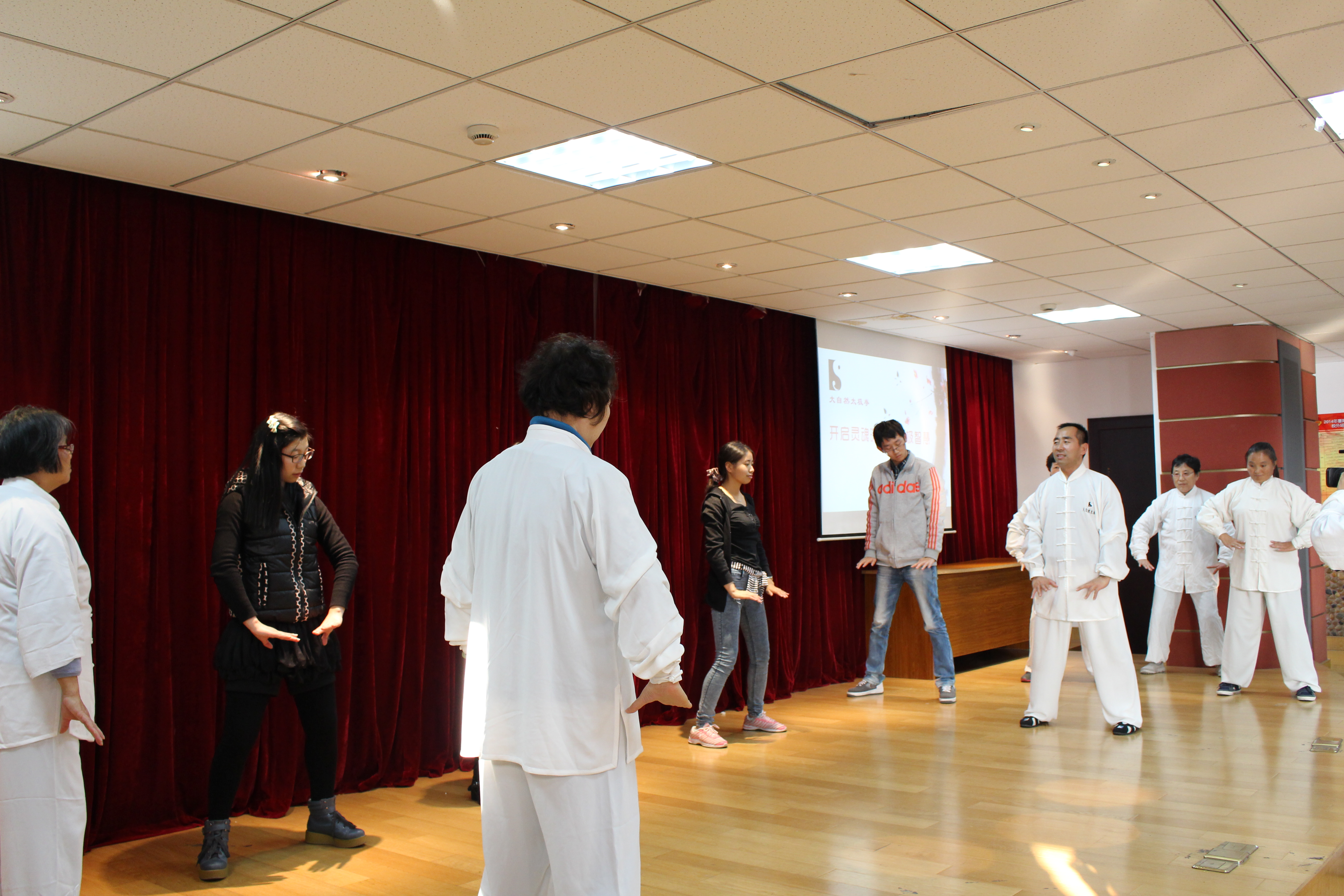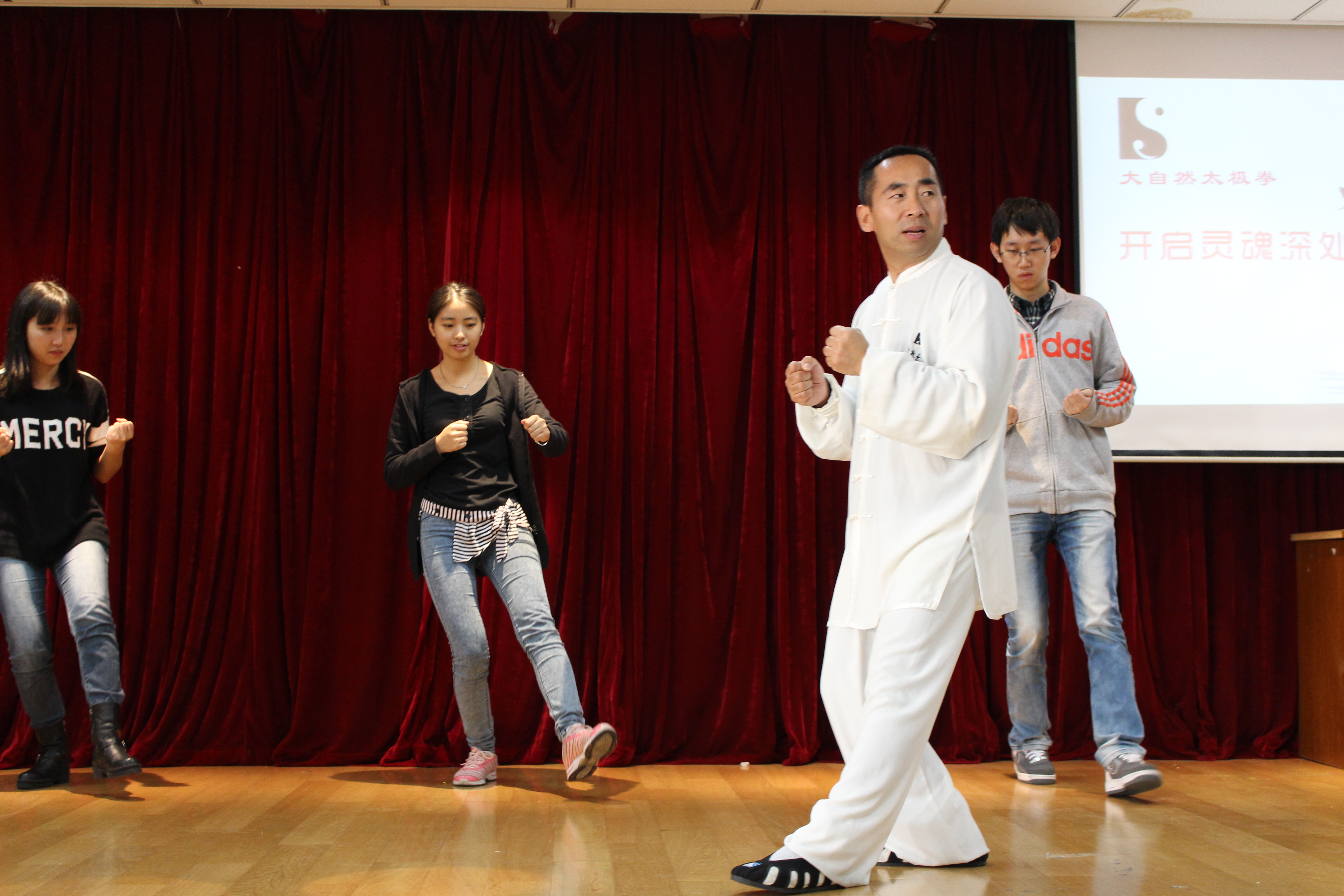 此外,本次讲座还特别设置了“太极拳体验教学”环节。舞台上,太极老师逐一纠正同学们的动作,通过台上台下的积极互动拉近了太极文化与在场的同学们之间的距离。 讲座通过多重形式为学子们提供了一个走近太极文化的机会,在领略太极艺术魅力的同时,使得更多的同学们意识到了增加文化底蕴、传承中华民族传统文化的重要性,同时也能够通过运动锻炼收获健康人生。