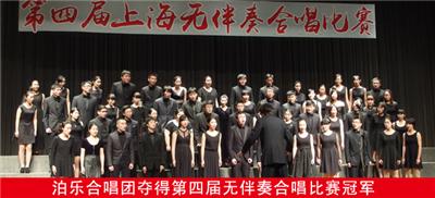 担任本次决赛的评委是由中国音协顾问、上海市文联副主席、著名作曲家陆在易,中国合唱协会常务顾问、著名作曲家指挥家萧白等七位中国一流作曲家和指挥家构成,彰显了本次大赛的权威性和公平性。本次比赛的颁奖晚会将于 该赛事每两年一届,八年来已发展成为上海市参与度和影响范围最大的艺术赛事,也是上海市最专业的合唱赛事,本届比赛还出现了多支外省合唱团加入到奖项的角逐中。作为上届比赛的金奖得主,我校泊乐合唱团获得直接进入复赛资格并在复赛中位列总排名第二,后经过认真总结与刻苦训练,决赛中泊乐以清澈透明的音色唱出了《黄昏之歌》的静谧安详,又以精湛的音准控制完成了无伴奏八部合唱《My Soul’s Been Anchored in the Lord》,获得了现场观众最热烈的掌声,在得知获得冠军的那一刻,团员们拥抱在一起,尽情的挥洒着喜悦的泪水,一位参加过两届比赛的大四老团员激动的说:“可以毕业了!” 泊乐合唱团是由我校团委主管,音乐学院参与共建的学生团队,其成员是由全校各院喜爱歌唱表演的非专业学生组成,由音乐学院青年指挥家、作曲 在今年10月大艺展上海赛区的比赛中,泊乐更是以优异成绩从全市各高校的48支参赛团队中脱颖而出,代表上海高校参加2015年2月于天津举办的教育部第四届全国大学生艺术展演决赛,泊乐将继续承载着师大精神顽强拼搏,力争早日成长为中国一流的大学生合唱团。