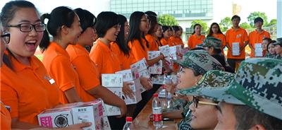 十年树木,百年树人,插柳之恩,终身难忘。9月10日为教师献上最美的祝福,是师大学子的共同愿景。 凉风习习,师恩暖暖 “老师教官,您辛苦了,教师节快乐!”为庆祝第31个教师节,9月9日下午三点,校院两级主要学生干部聚集师大南操,借着军训的热潮,为本次军训的全体指导员以及教官送上了小风扇,为在军训季坚守岗位的老师和教官们送去一份心意。对于这份突如其来的惊喜,一位辅导员说:“今天收到大家的祝福和礼物真的很感动,这几天的辛苦也感觉一下子没有了。希望阅兵式的时候学生们都能发挥出最好的状态,这将是教师节最好的礼物。”一句问候,一份礼物,师大学子的点滴心意承载着深深的敬意。下午五点,校学生会主席团成员前往军训承训教官的就餐地点,又将这份清凉也送到了承训教官的手中。结束了一天在烈日下的训练,教官们收到礼物露出了欣慰的笑容,向前来献礼的同学们敬礼致谢。