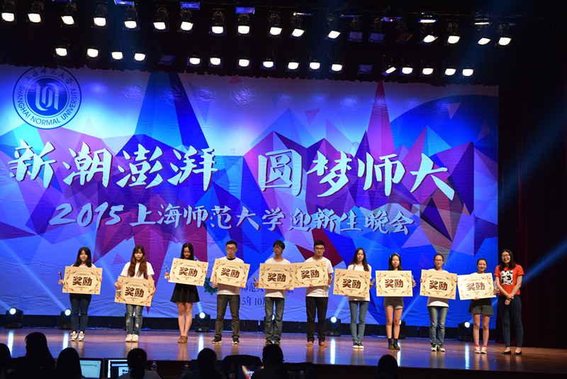 10月9日,2015年上海师范大学迎新生晚会在奉贤校区师大剧院隆重举行。此次晚会由上海师范大学学生会主办,以“‘新’潮澎湃,圆梦师大”为主题,校院两级团委老师、华东理工大学及应用技术学院的学生代表与近千名师大学子共襄盛举。