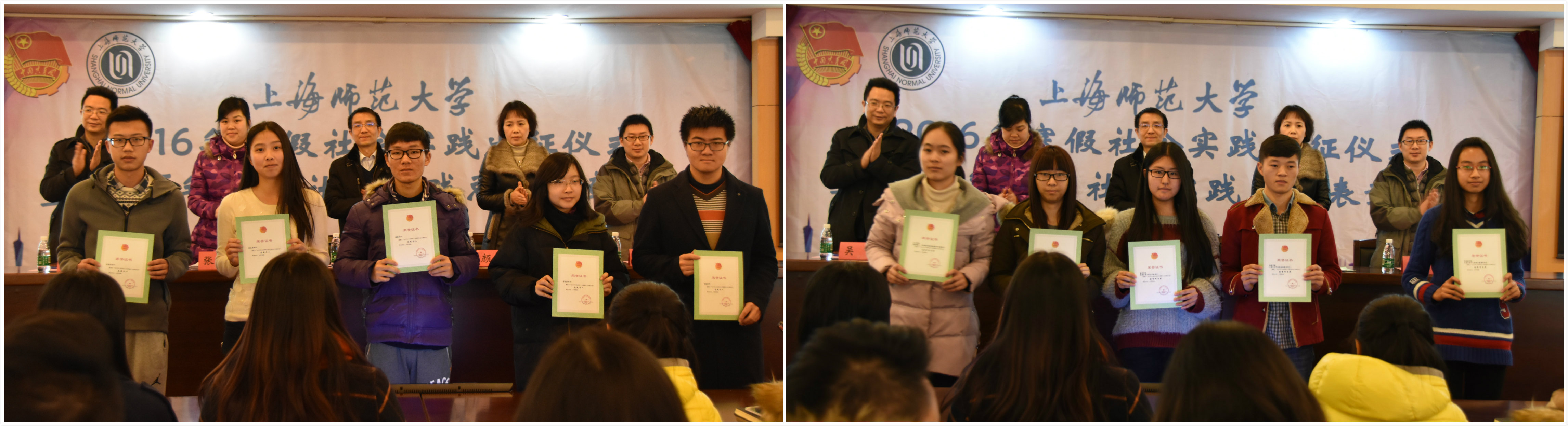 1月13日,2016年寒假社会实践出征仪式暨2015年暑期社会实践总结表彰大会在奉贤校区图文信息中心九楼召开。校党委副书记、副校长葛卫华,宣传部、学工部、教务处、校团委相关部门负责人,各学院分管学生工作的副书记、分团委书记和学生代表出席会议。