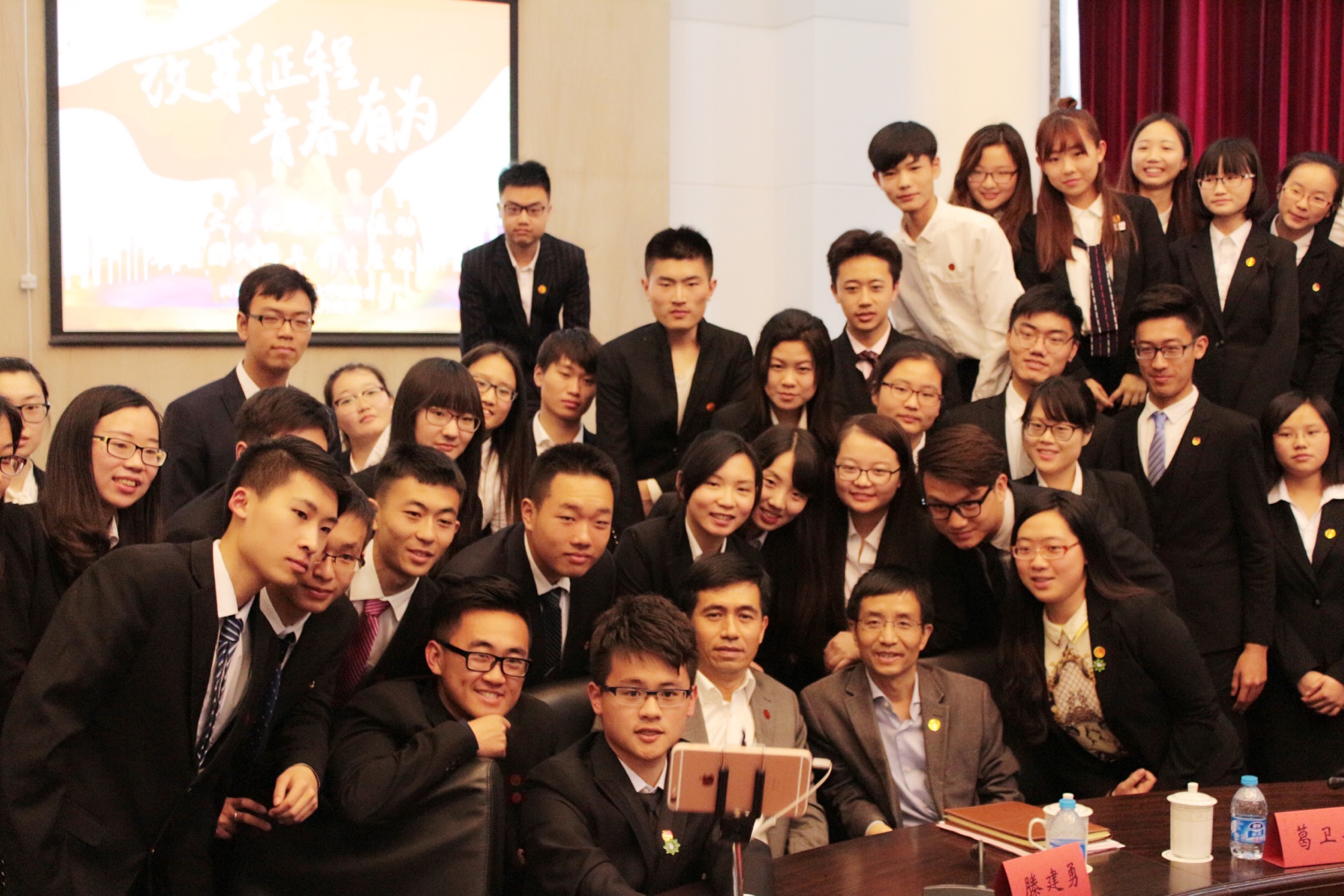 分享会结束之后,校党委书记滕建勇、校党委副书记、副校长葛卫华与学生代表亲切座谈。校院学生会、学生创业团队、校园大使、社团负责人、学生民主管理组织、新媒体小编等学生代表针对十个校园生活议题表达意见和建议,共话学校建设。 ![]() 座谈会上,滕建勇书记回应了青年代表集中反映的问题,解读了学校综合改革的前景蓝图,分享了群团改革的紧迫性,寄语青年学子要有梦想,志存高远;要有本领,全面发展;要有担当,主动作为。
