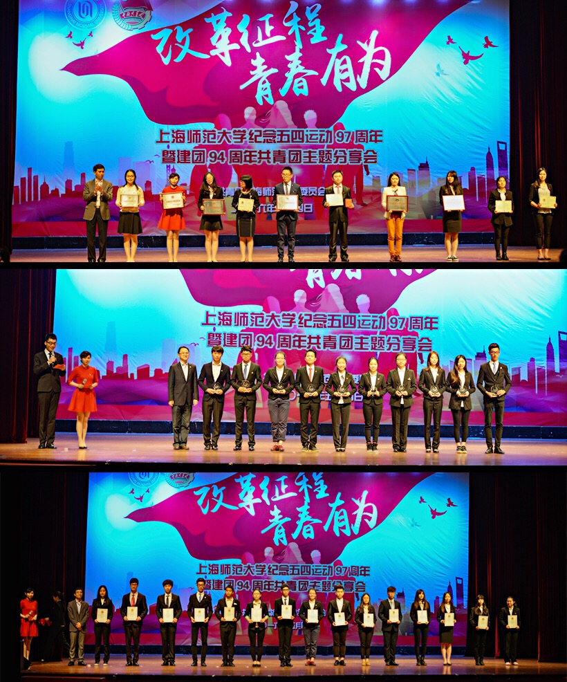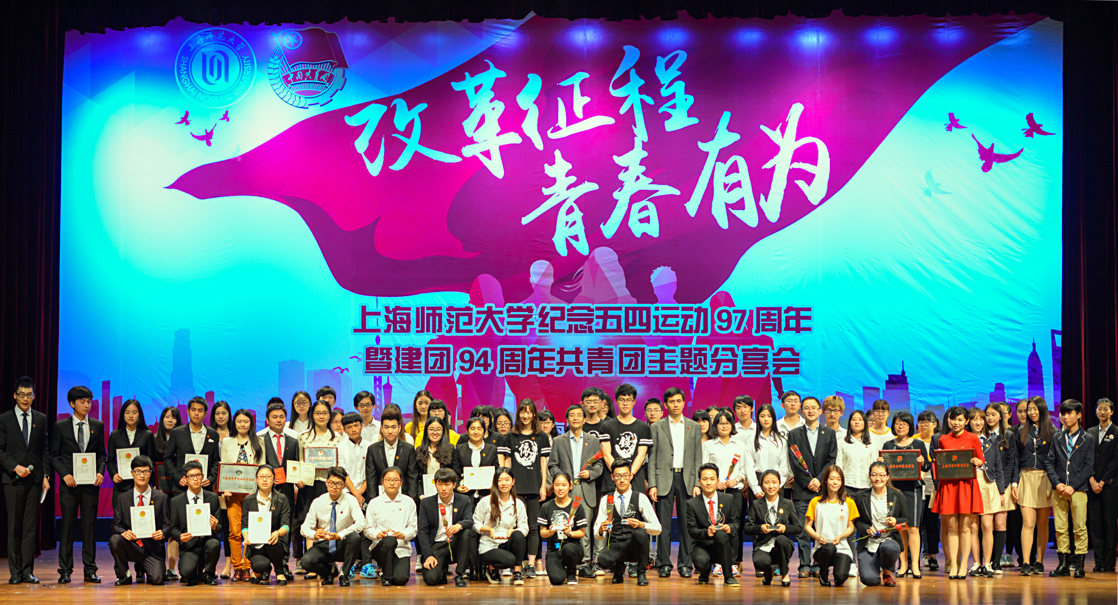 5月4日,我校纪念五四运动97周年暨建团94周年共青团主题分享会在师大剧院召开。校党委书记滕建勇,校党委副书记、副校长葛卫华、团市委学校工作部部长徐速,校办、组织部、宣传部、学工部、研工部、信息办负责人出席,各学院分管学生工作副书记、专兼职团干部及师生代表在分享会上共话成长。现场还表彰了市级、校级共青团集体、个人和“十大活力团支部”。 ![]() 校党委书记滕建勇向团员青年、奋斗在共青团工作一线的团干部致以节日的祝贺和诚挚的问候;他号召同学们坚定理想,勤于学习,勇于担当,脚踏实地;希望每一个师大青年能够在改革征程中做信仰坚定的爱国者,做敢为人先的创新者,做文明风尚的引领者,做艰苦奋斗的建设者,为五四精神打上新的时代印记。