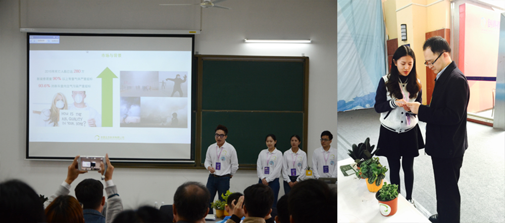 ![]() 创业计划赛银奖作品《净源生态科技有限公司》,主创团队通过植物驯化技术提升植物净化能力与生存能力,建立技术壁垒;通过三项植物快速繁殖技术提高产量与产速,降低生产成本。通过对48种植物进行筛选,得到净化能力远超平均水平的植物,将植物在净化甲醛、苯等有机污染物方面的优势与传统机械净化方式在净化pm2.5等可吸入颗粒物方面的优势相结合,实现1+1大于2的一体化净化效果。