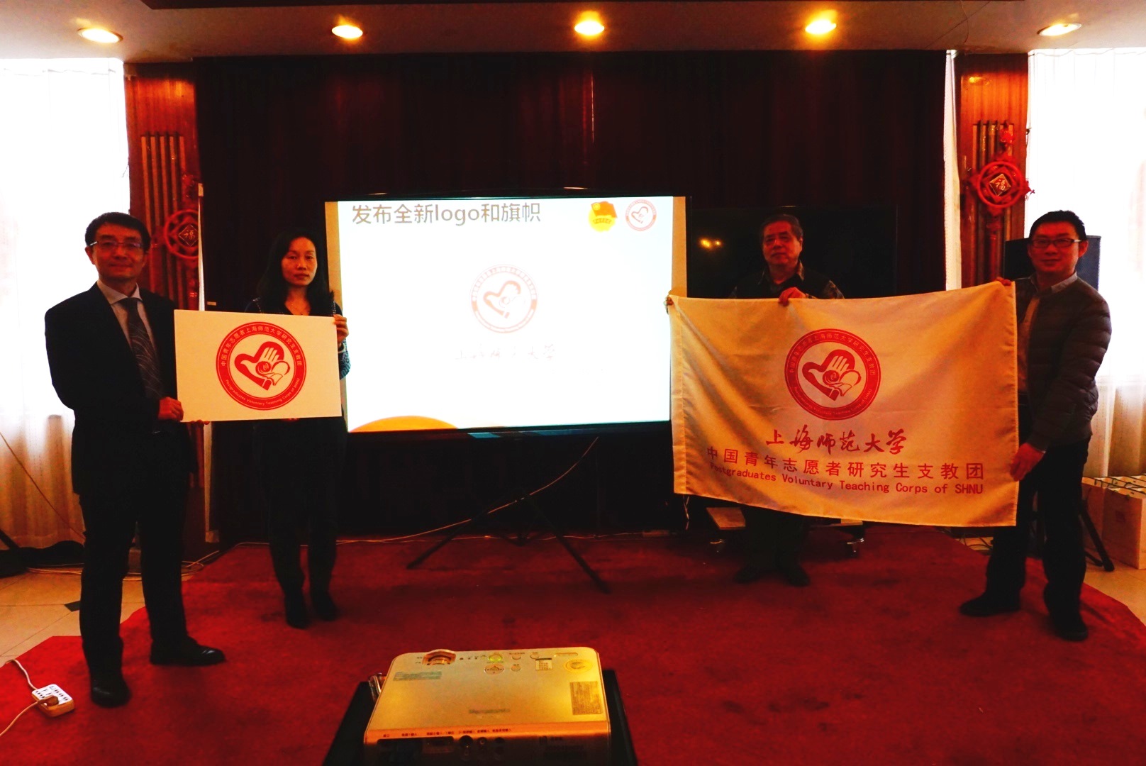 1月12日,我校第十八届研究生支教团分别从甘肃酒泉玉门、广西百色田阳返沪,与母校师生共话支教筑梦的经验与收获。校党委副书记、副校长葛卫华,上海韩哲一教育扶贫基金会副理事长、秘书长韩烽火为支教团成员送上新年祝福和慰问品,校办副主任、教育发展基金会秘书长及全体校团委指导老师共聚一堂,听取第十八届研究生支教团半年工作汇报,并共同见证上海师范大学研究生支教团全新标志和旗帜的发布。 甘肃支教团团长陈冬尔代表支教团成员回顾了半年支教生活,表示全体甘肃支教团成员将不忘初心,继续前进。我校陈冬尔、张力夫、谢怡青、张雨浓、陈美子、周同、庄燕等7名成员服务于玉门市第一小学、第二小学、第二中学、第三中学,教授英语、数学、美术等主副课程15门。开展“英语听写大赛”等素质拓展活动6个并成功申请“千元计划”。除做好日常教学及活动开展工作,他们积极协助当地开展扶贫工作,搭建沪甘共进桥梁,共寻19位资助人,筹集爱心物资、发放助学金27200元。作为有优良志愿者传统的师大人,他们积极加入“第二届甘肃向西开放区域经济研讨”等志愿者队伍,奉献西部。 广西支教团团长葛亦乔代表支教团成员分享了半年支教心得,她表示广西团全体成员将奉献西部,不负期待。葛亦乔、金琪、章丹、郜聿页、邢冰伟、姜悦、缪珺雯、陈宵等8位同学分别在五村中心小学、坡洪中心小学、永常希望小学、玉凤中心小学担任教师,共教授语文、科学等22门课程,每人每周承担17课时教学量。他们积极开展助学助困、捐赠帮扶工作,帮助39名贫困家庭的学生找到了资助人,家访16户贫困学生家庭,累计发放助学金31220元,并开展“汉字听写大赛”等四项“千元计划”项目。