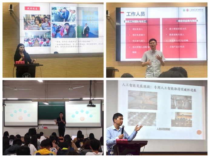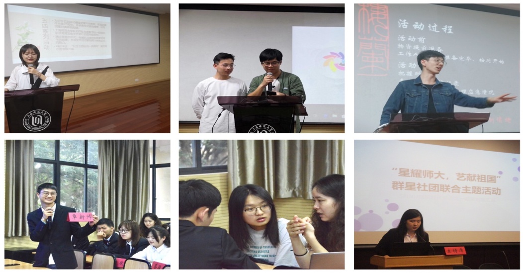 在实践课程部分,校内外优秀学生社团社长带来了经验分享。在“我与我的社团”主题社长沙龙中,来自华东理工大学和上海应用技术大学的优秀学生社团社长,就学生社团的自身发展与交流平台的打造这一话题,与我校社长展开热烈的讨论。在“社团建设与活动策划”专题分享会中,我校优秀学生社团社长结合自身经验进行心得分享。在进行了理论课程学习与实践探讨后,各位社长充分利用精英社长培训这一交流展示平台,完成了具备完整性、可操作性、联动性、创意性的联合活动策划案并做分享。