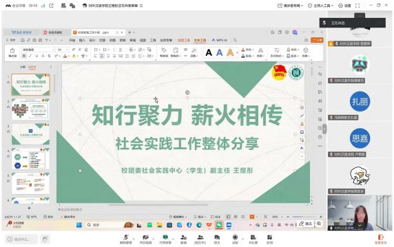 2025年10月18日中午,两院特邀校团委社会实践中心副主任王煜彤以“知行聚力,薪火相传” ——社会实践工作整体分享为主题解析校院两级团委社会实践组织架构等,分享社会实践对责任意识、创新精神的锤炼,展现知行合一力量。