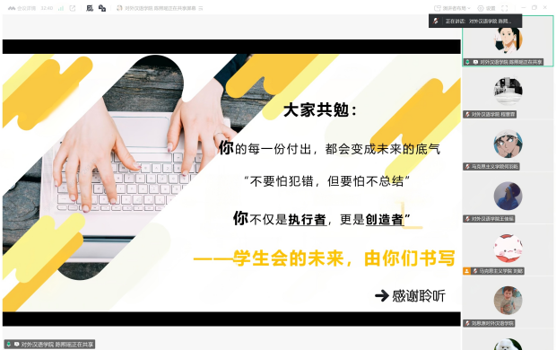 活动尾声,对外汉语学院团委书记罗铭玙作结业总结。她紧扣学习党的二十大精神、贯彻青年工作论述、深化学生会改革成果等核心目标,对两院团委学生会工作人员提出三点期望,希望大家借培训深化对团学工作的认知,携手开创工作新局,为同学、学院和学校的发展贡献青春力量。