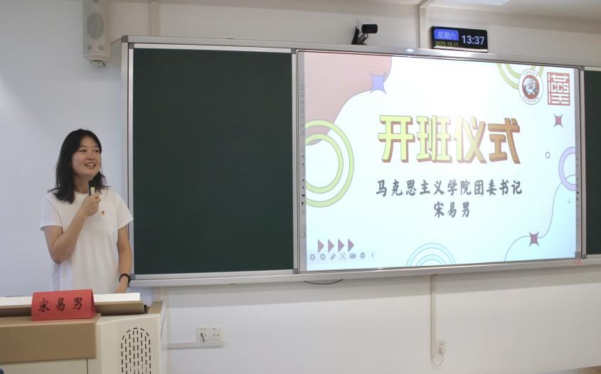 马克思主义学院团委书记宋易男在开班仪式上,结合两院专业特色与团学工作内核,从“初心开拓、真心攀高、信心赴远”三个维度,阐释新时代团学骨干的责任担当,号召学员以纯粹之心投入培训,将三心转化为“能服务、善创新、勇担当”的实践行动。