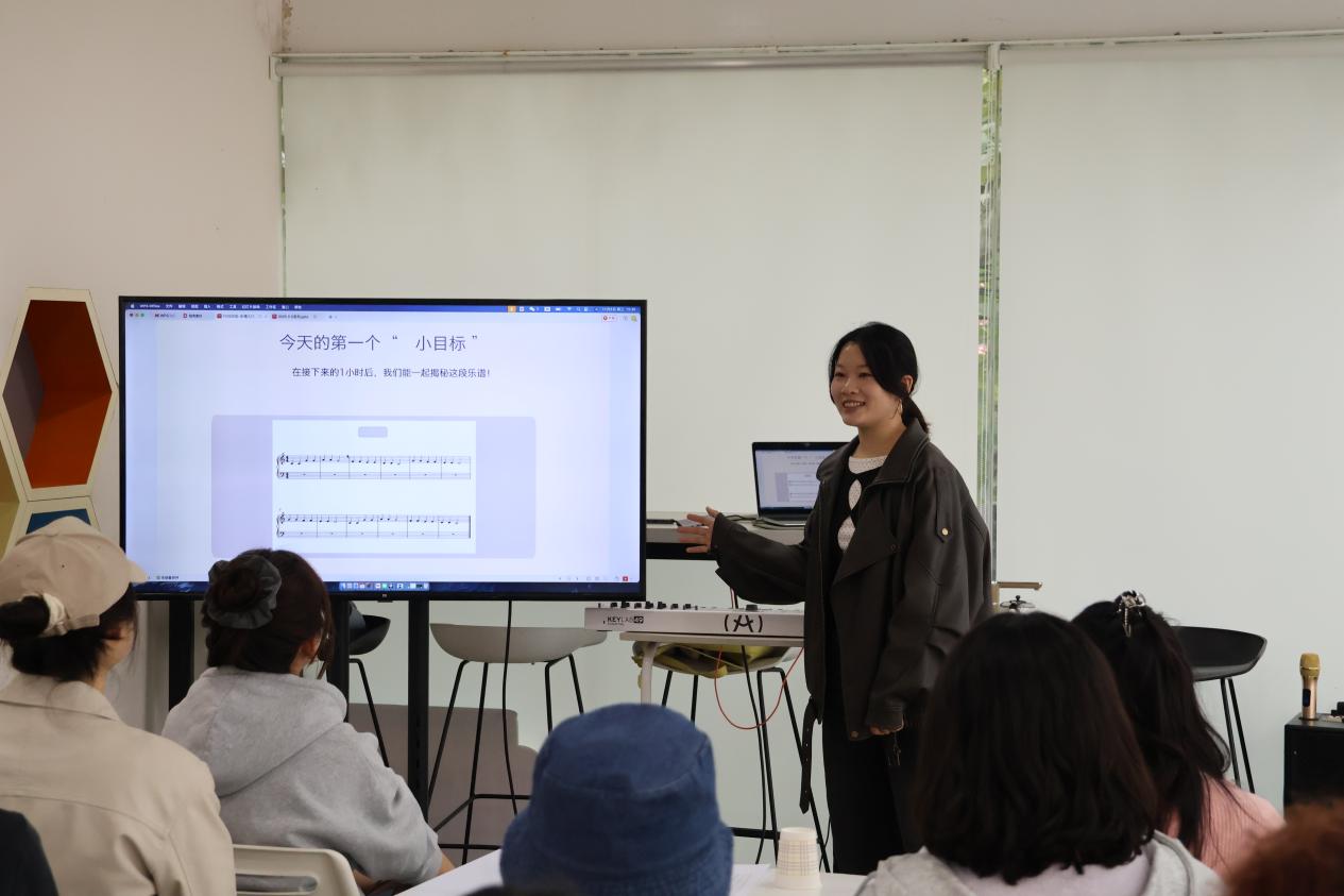 11月5日,“艺启知音,美育浸润”系列校园音乐沙龙首场活动在上师大徐汇园区东六活动室顺利开展。音乐学院2024级硕士、中共党员宋佳欣以《想玩音乐先识谱!超易懂的乐理入门课,让你快速get乐谱小技巧》为题,用通俗讲解与趣味互动相结合的方式,带领现场同学解锁五线谱奥秘,开启轻松愉快的音乐学习之旅。