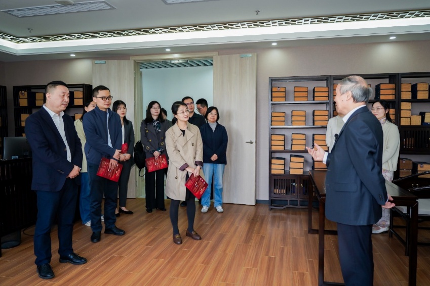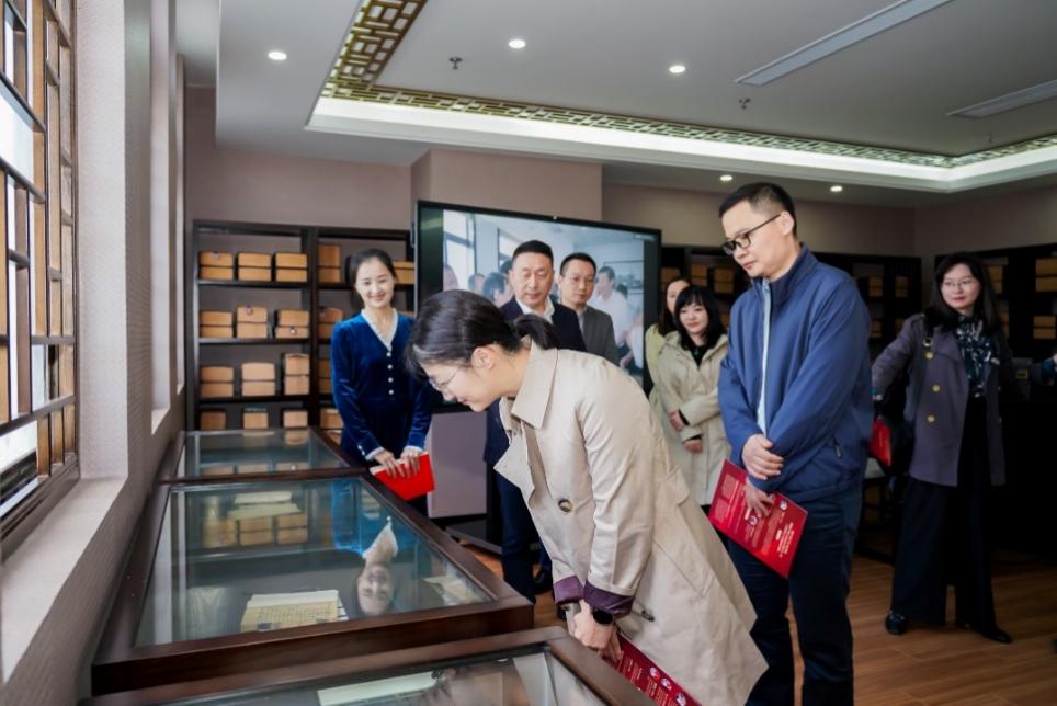 在文苑楼教学点,苏智良教授现场回忆了总书记来到上海高校都市文化E-研究院和上海师大都市文化研究中心,并浏览学校近年来的课题研究及成果的场景。姜杉副教授以当年总书记考察时的学生讲解员身份,还原了总书记考察现场情景,并分享了自己的成长感悟。王乙珈老师向现场人员介绍并展示了总书记当年观看的陈寅恪先生手批的《白氏长庆集》和王国维先生手校的《一切经音义》原本。