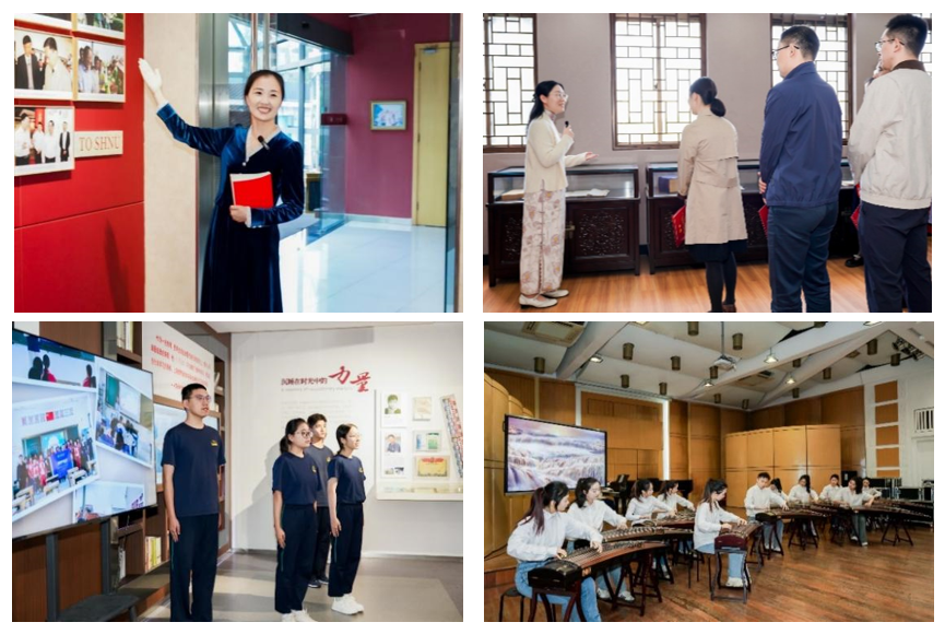 作为团中央组织部此次在上海考察的唯一高校教学点,我校的现场教学围绕《习近平与大学生朋友们》第二卷中《习书记勉励我们“未来做传播中华优秀传统文化的好老师”》篇章,再现了习近平总书记200796日来到上海师大考察时的场景和故事。通过仪式教育、情景演绎、亲历者讲述等实景课堂和行走路线,让在场人员沉浸式感受总书记对青年学子的殷切期望和谆谆教诲。教育学院杨伊副教授带领考察团一行先后走进徐汇校区校史馆、文苑楼、小音乐厅,沉浸式体验总书记当年考察足迹。习近平总书记当年考察上海师范大学的亲历者,人文学院苏智良教授、影视传媒学院姜杉副教授动情回顾了当年与总书记交谈的场景和感受。人文学院古籍所王乙珈老师讲解了总书记来校观看的古籍原本,来自环境与地理科学学院的宝根师德师风研习社和音乐学院玉兰筝团的同学们进行了现场情景演绎。