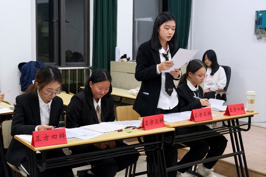 首场赛事的热烈余温尚未褪去,第二场的两轮比拼已紧接着拉开帷幕。10月22日下午,第三教学楼412教室中,正反双方以“以暴制暴是不是正义”为辩题展开辩论。正方率先阐述观点,认为以暴制暴是弱者的及时自保,并以正当防卫论证,提出以暴制暴其实是对惩恶扬善的直接践行。反方则立足暴力评判的难以确定特性提出质疑与反驳,条理清晰。后续双方围绕暴力的主观性判定和难以约束特点进行深入探讨,自由辩论环节攻防转换迅速,针对对方论述漏洞展开反击,展现出教院学子对复杂议题的独到见解与精准阐释的能力。