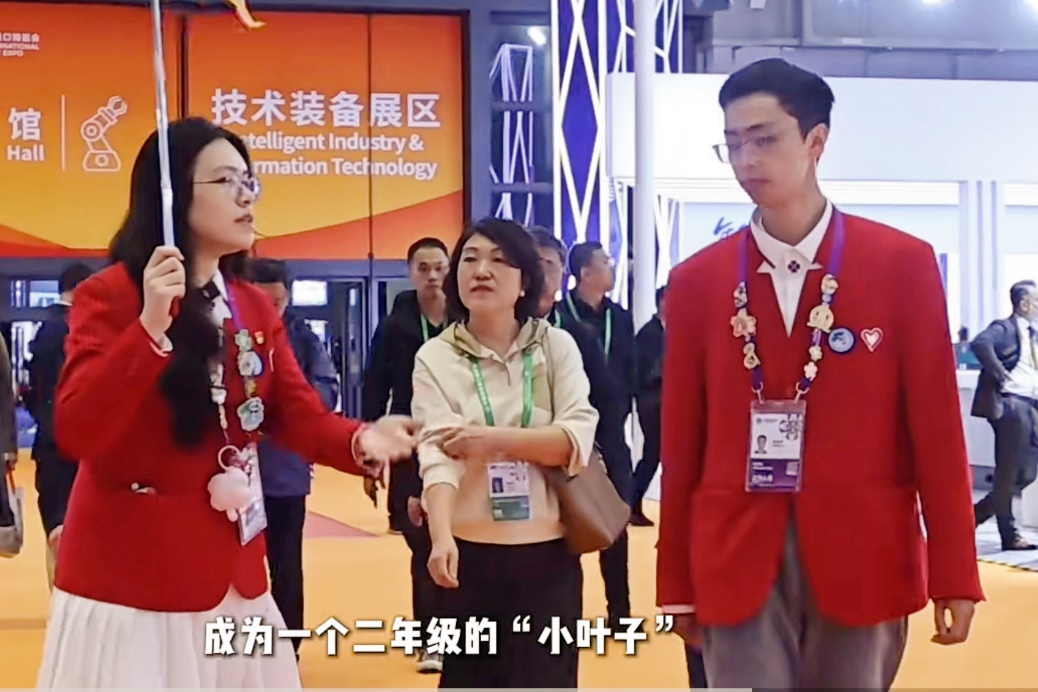 外国语学院英语专业的陈阳同学作为一名一年级“小叶子”,在综合接待组负责为多家国际企业提供双语服务。受到从事国际贸易工作的父亲的影响,从小到大她一直希望能为国际交流尽一份力。通过参与进博会志愿者工作,她真正理解了父亲一直教育她“要在海外市场为‘中国制造’赢得声誉”这句话的涵义。