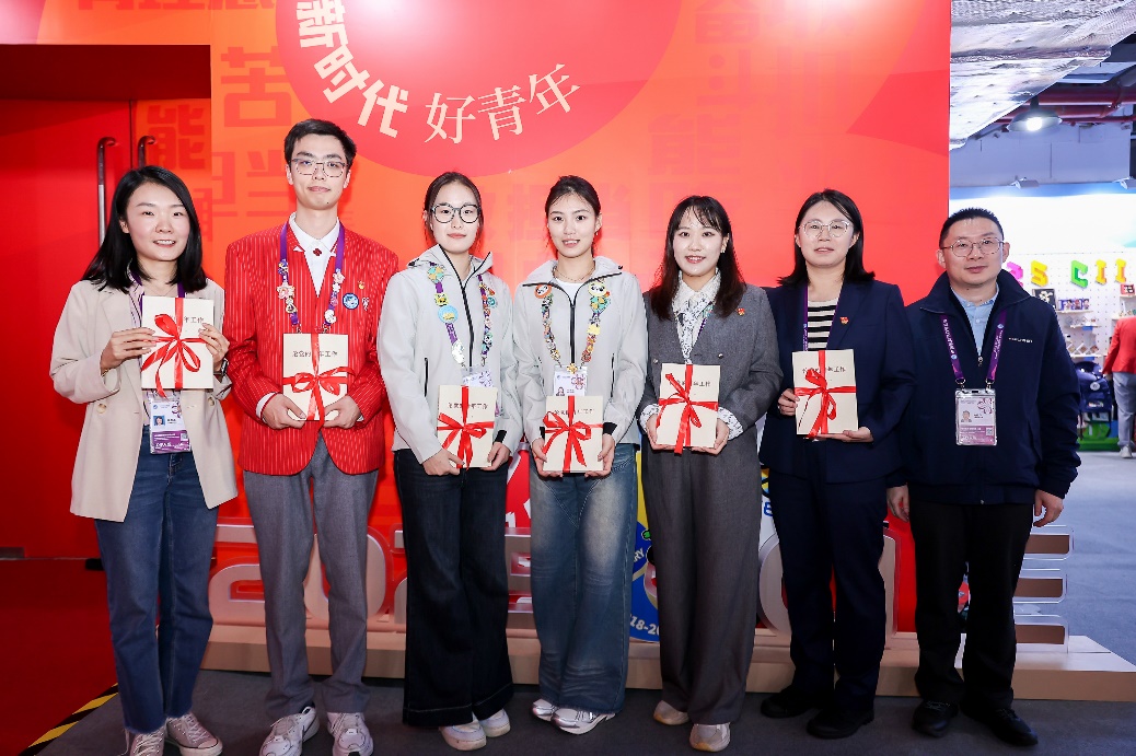 在志愿者之家,林在勇以“‘青春之我’融入‘国之大我’,在进博盛会中挺膺担当”为主题,讲授了一堂深刻生动的微党课。结合党的二十届四中全会“组织动员青年在高质量发展一线勇当先锋”的要求,他勉励同学们心有所信坚定理想,延续“扎根”精神;学有所悟苦练本领,诠释青年担当;行有所成赓续力量,传递志愿与开放精神。慰问现场,林书记为志愿者代表颁发了本次进博会官方限量纪念徽章。