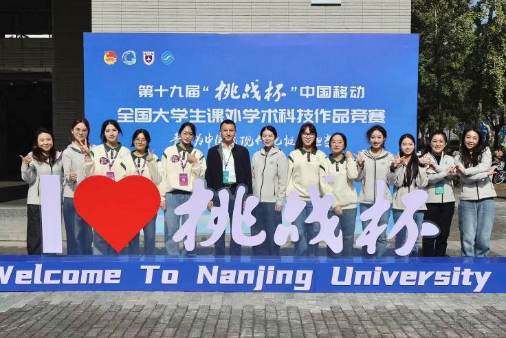 比赛期间,校党委副书记、副校长朱惠军前往南京大学看望和慰问参赛师生,观摩了参赛团队精心布置的展位并听取项目汇报。