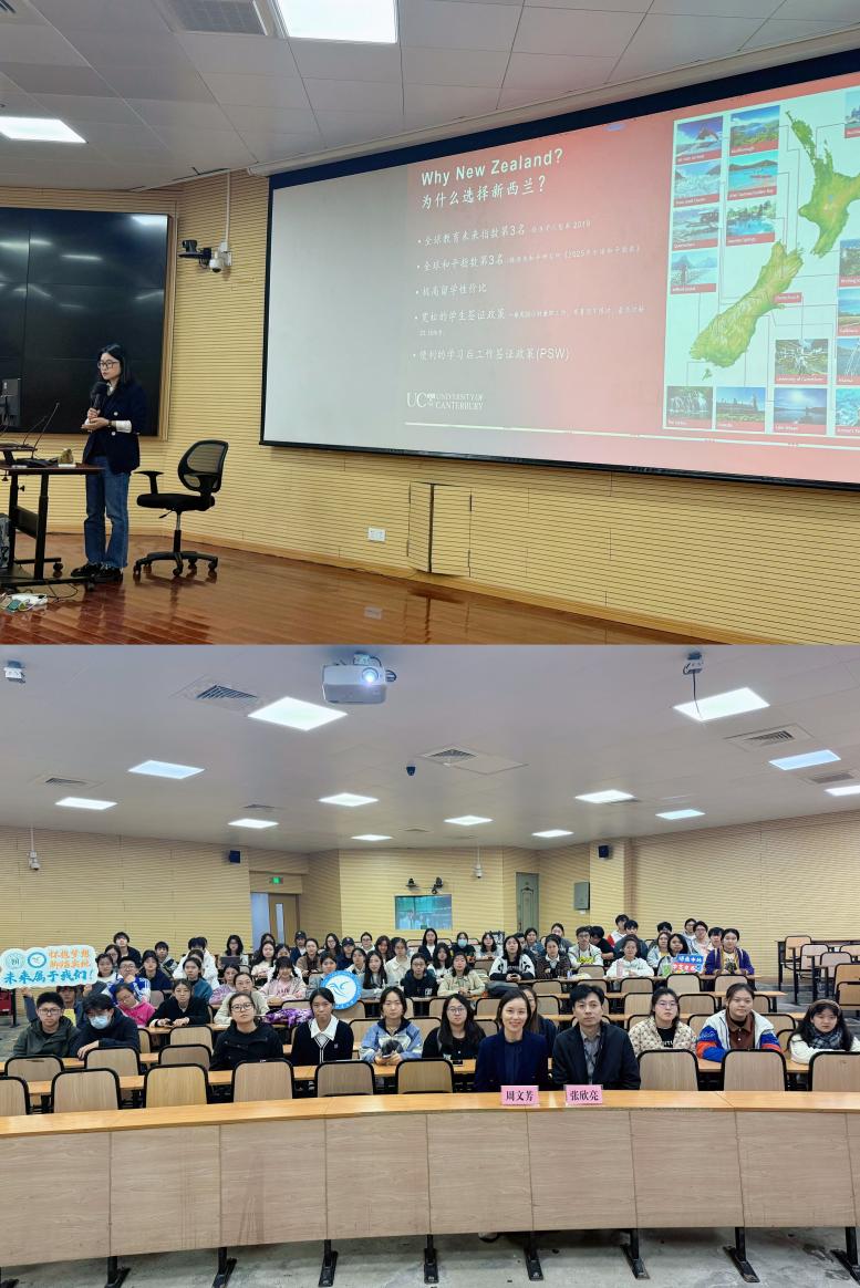 解俊老师为同学们详细介绍了学校与新西兰坎特伯雷大学的合作交流项目。她指出,该项目旨在帮助学生拓宽国际认知,并特别注重培养学生在世界文化与全球议题、沟通与协作、开放与尊重等方面的核心素养。
