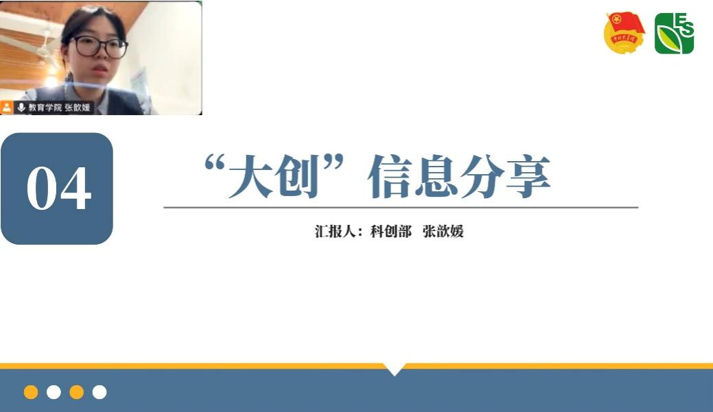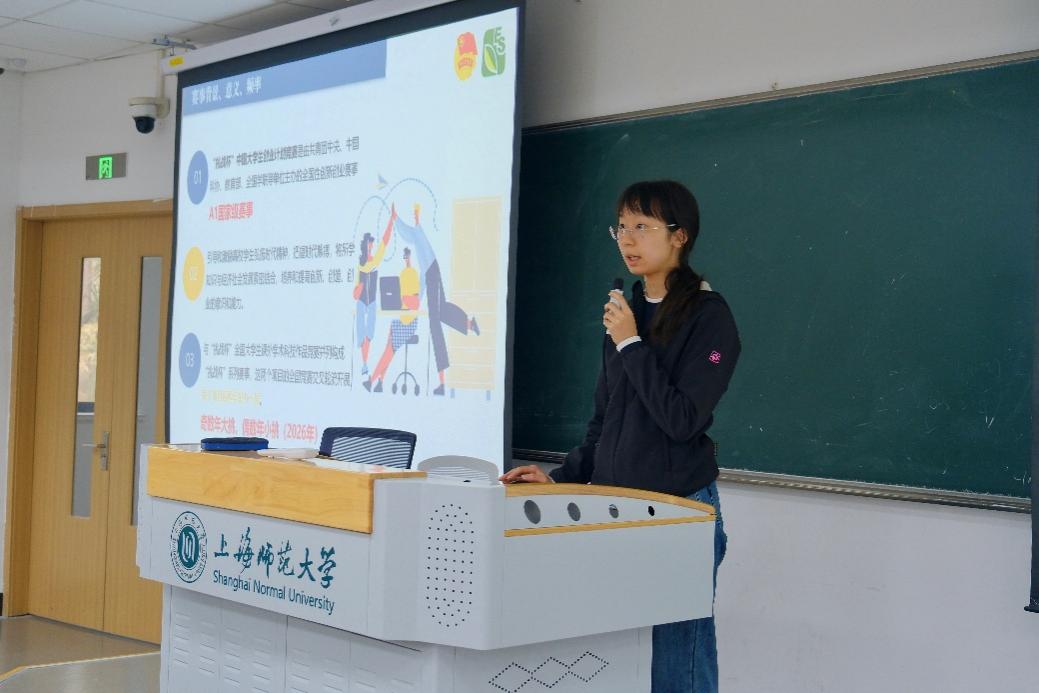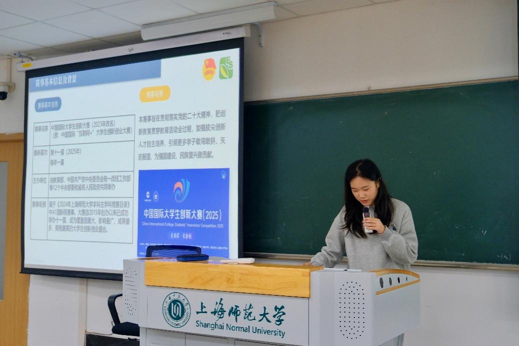 赛事矩阵高覆盖,专业契合指方向。周恬易同学将中国国际大学生创新大赛(原“互联网+”)与“明日科技之星”评选两大赛事贯通讲解,引导同学们结合教育学院背景选择适配赛道,重点关注与文科专业特质相契合的参赛方向,鼓励教院学子积极参与。