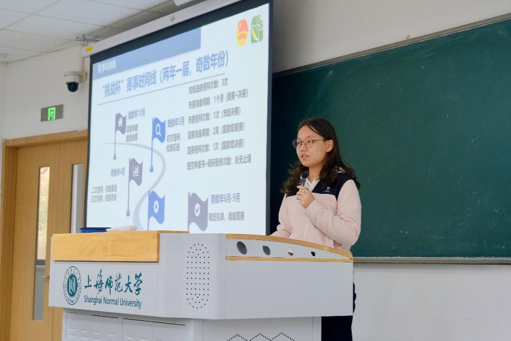 五大赛事筑舞台,时间脉络清晰铺展。分享会伊始,顾忠萱同学系统梳理各类重大科创赛事时间线,将大学生创新创业大赛、“大挑”、“小挑”、中国国际大学生创新大赛、“明日科技之星”评选五大赛事的核心信息精准传递,让同学们对科创赛事体系有了全景式认知,为后续参赛方向选择筑牢根基。