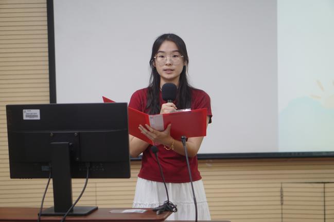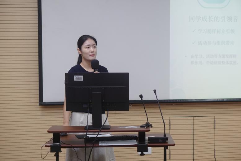 华启涵就班团职位认识与能力提升展开分享,她从“四大角色定位”、“三大核心工作能力”等方面出发,结合自身工作经验与新晋班团们分享提升班团综合能力的切实经验,表示学生干部应当充分发挥先锋模范作用,争做班级的引领者、建设者、协调者与服务者。