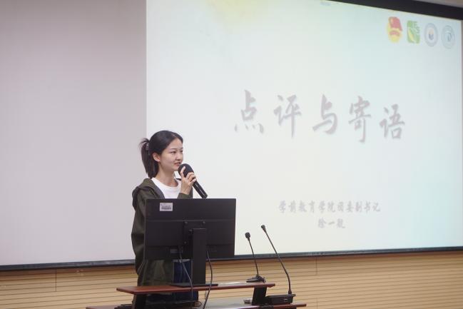 学前教育学院2025级1班团支书沈佳琪作为新生班团干部代表进行发言,她结合班级文化建设经历和培训收获,从对班团工作的体悟出发,展望未来班团建设的具体工作,并呼吁全体2025级班团骨干怀赤诚之心、行实务之举,不断提升工作能力与服务效率,合力构建有团结力、奋进心、归属感的班集体。