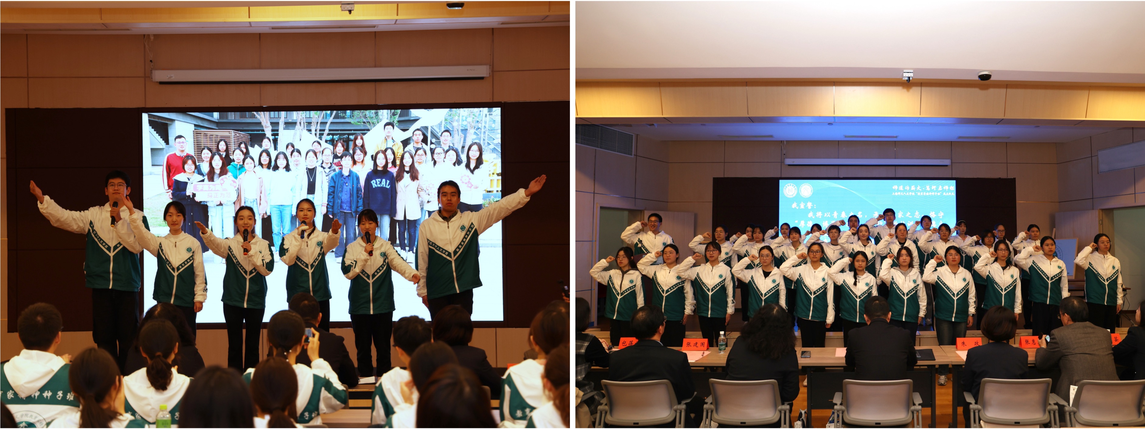 在师长的见证下,“种子班”同学作出了铿锵回应。班级学生代表以一场声情并茂的原创集体诗朗诵《我们是教育家的种子》,发出了“未来教育家”的青春强音。随后,全体“种子班”同学庄严宣誓,誓言献身教育事业、传承师道薪火。