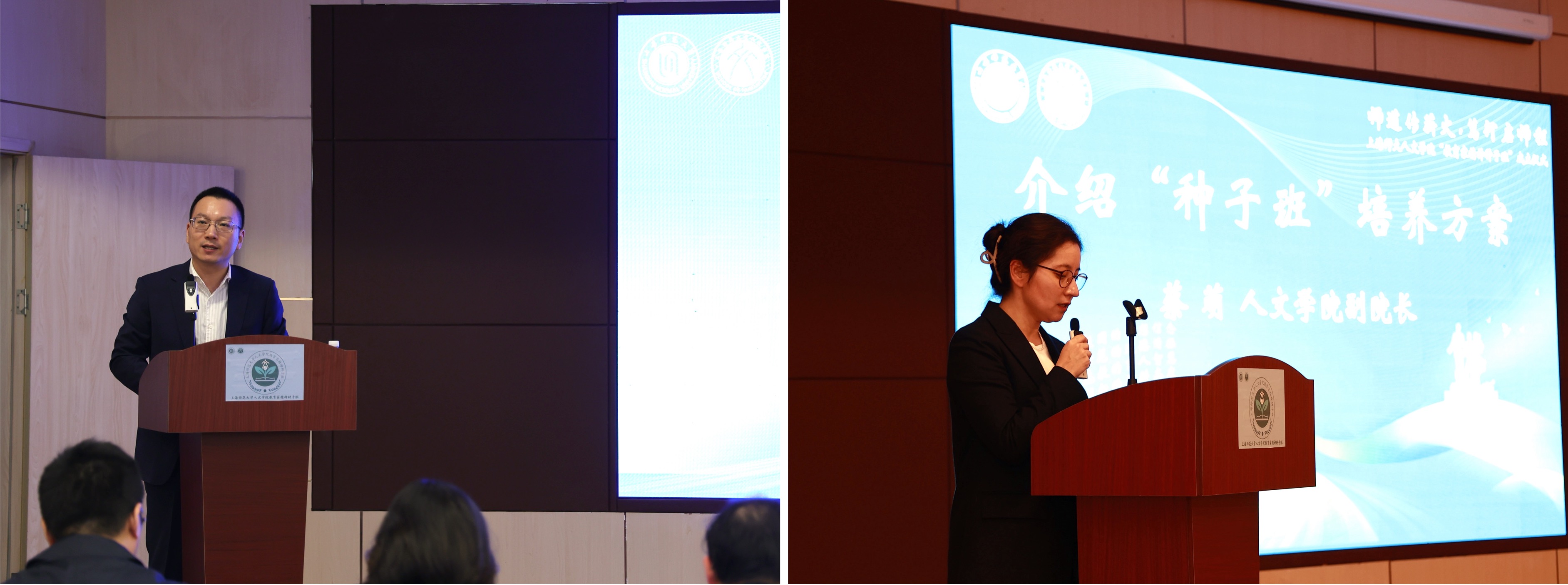 同时,“种子班”创新实施思政、学业、科研、技能、实践“五维导师”制度,以多元主体共建“育人共同体”,为“种子班”的成长提供丰厚土壤。科研导师代表、中文系主任王宏超与实践导师代表、上海师范大学附属奉贤实验中学校长包蓓姹先后发言。王宏超表示将引导学生“追求真理,恪守学术规范”,包蓓姹则承诺“将一线最鲜活的经验与案例毫无保留地带给师范生”,他们从不同角度,表达了倾心指导、保驾护航的决心,展现了“良师领路”的深厚情谊与责任担当。