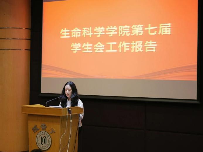大会在庄严的国歌声中拉开序幕,生命科学学院学生会执行主席张筱翊向大会作工作报告。她从“铸魂强基,始终把政治引领放在首位”“赋能成长,始终把同学需求放在心上”“力行致远,始终把创新突破抓在手上”三个方面总结回顾了本届学生会在思想引领、组织建设、权益维护、校园文化和新媒体建设等方面的工作,并展望了下一学年的工作重点。