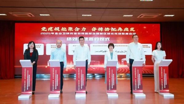 高亭书记代表学院党委,与金山卫镇党委、金山区国资委党委、金山电信局党委、复旦大学金山医院党委、拉扎斯网络科技(上海)有限公司党委签署党建共建协议,围绕党建共研、共育、共创、共学等项目达成战略合作。