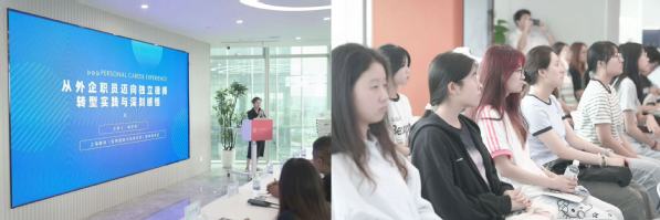 在数科律师事务所(虹桥国际中央法务区),执行主任梁艳娜介绍了律所依托区位优势在商事法律、企业合规管理领域的布局,以及智能化办公与智慧法律服务模式。喻华林律师以“外企职员迈向独立律师”为题,分享职业转型实践;顾昭沁律师结合“DeepSeekAI工具的应用实践”,剖析技术对法律行业的影响;范沈宏律师则通过实务挑战案例,勾勒律师行业真实图景。活动为学生搭建了理论与实务交融的学习场景。