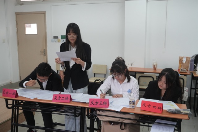 9月24日下午,数理学院“星垣杯”辩论赛在奉贤校区第三教学楼顺利举行。本次辩论赛的评委由2025级辅导员王远萍、24级哲法学院领队金袁清、24级对外汉语学院顾问唐凯威、24级外国语学院领队周雨田、24级商学院顾问陈炜赟担任。计时员和主持人分别是24级辩论队顾问柯其轩以及24级辩论队成员张林冉,8位辩手以及学术部工作人员参与本次活动。