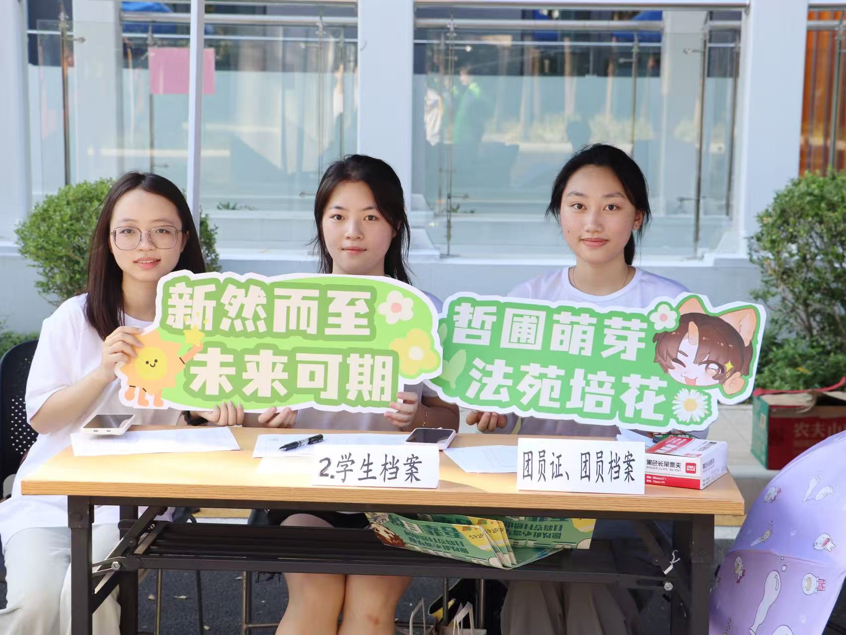 为给新生营造独特的入学体验,学院精心布置了独具特色的主题展板,展板上不仅展示了学院的学科优势、师资力量与校园文化;同时,学院还为每位新生准备了充满惊喜的新生礼包,礼包内包含定制文具等实用物品。报到期间,不少新生与学院活泼可爱的吉祥物“灋灋”合影留念,镜头定格下一张张灿烂的笑脸,为这场初遇留下珍贵记忆。