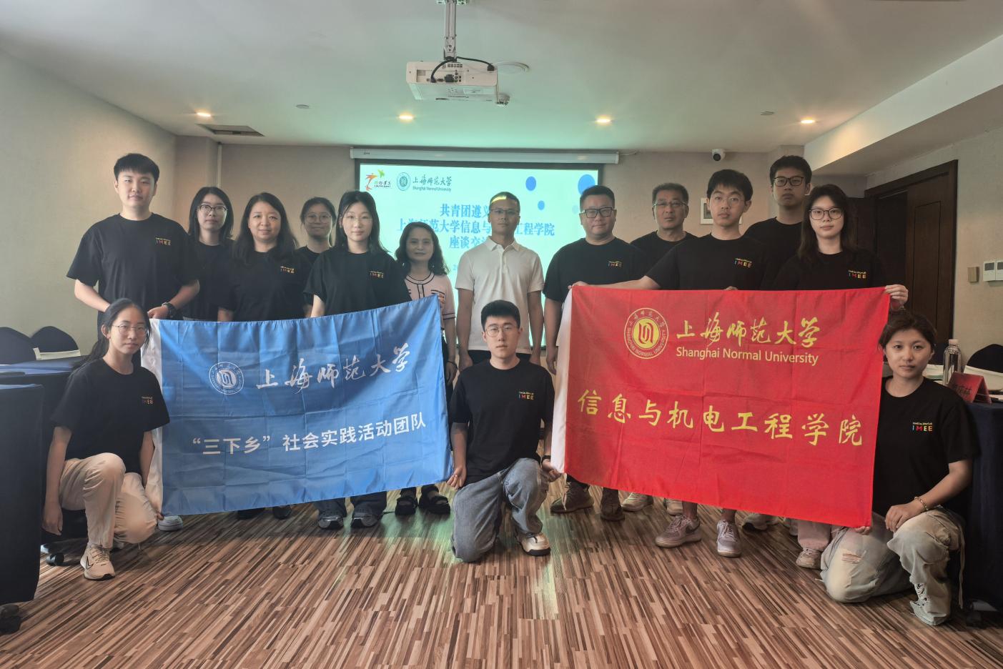 深化合作,共育时代新人。为进一步加强院地合作,探索实践育人共同体的建设路径,学院团队与共青团遵义市委员会进行了座谈交流,共青团遵义市委副书记李勇、组宣部部长李杨静出席座谈。共青团遵义市委副书记李勇介绍了遵义团市委的青年工作情况,并表示,沪遵合作渊源深厚,希望以此为契机,与信机学院建立常态化协同育人机制,将遵义的红色资源与产业场景转化为教学案例与科研课题,实现课堂内外双向赋能。学院党委副书记、副院长何佳介绍了本次“三下乡”团队的基本情况,及学院近年来在人才培养、产教融合与社会服务方面的成果,希望以学院遵义籍大学生为情感纽带,进一步推动院地合作,实现“红色基因+数字赋能”的资源互补、互促共赢,共同探索青年成长与教育协同的新路径,更好助力遵义籍大学生反哺家乡的建设。